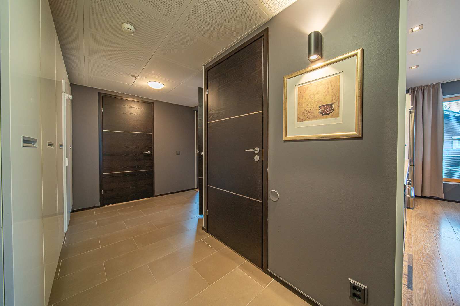 Huoneisto sijaitsee kolmannessa kerroksessa. Huoneistossa kolme makuuhuonetta, keittiö-olohuone jossa modernit pintamateriaalit sekä huonekalut, kylpyhuone-saunatilat, jossa lisämukavuutta tuo poreamme, kaksi erillistä wc:tä, päämakuuhuoneesta pääsy parvekkeelle. Parveke on koko asunnon levyinen. Huoneistossa tilava eteinen.