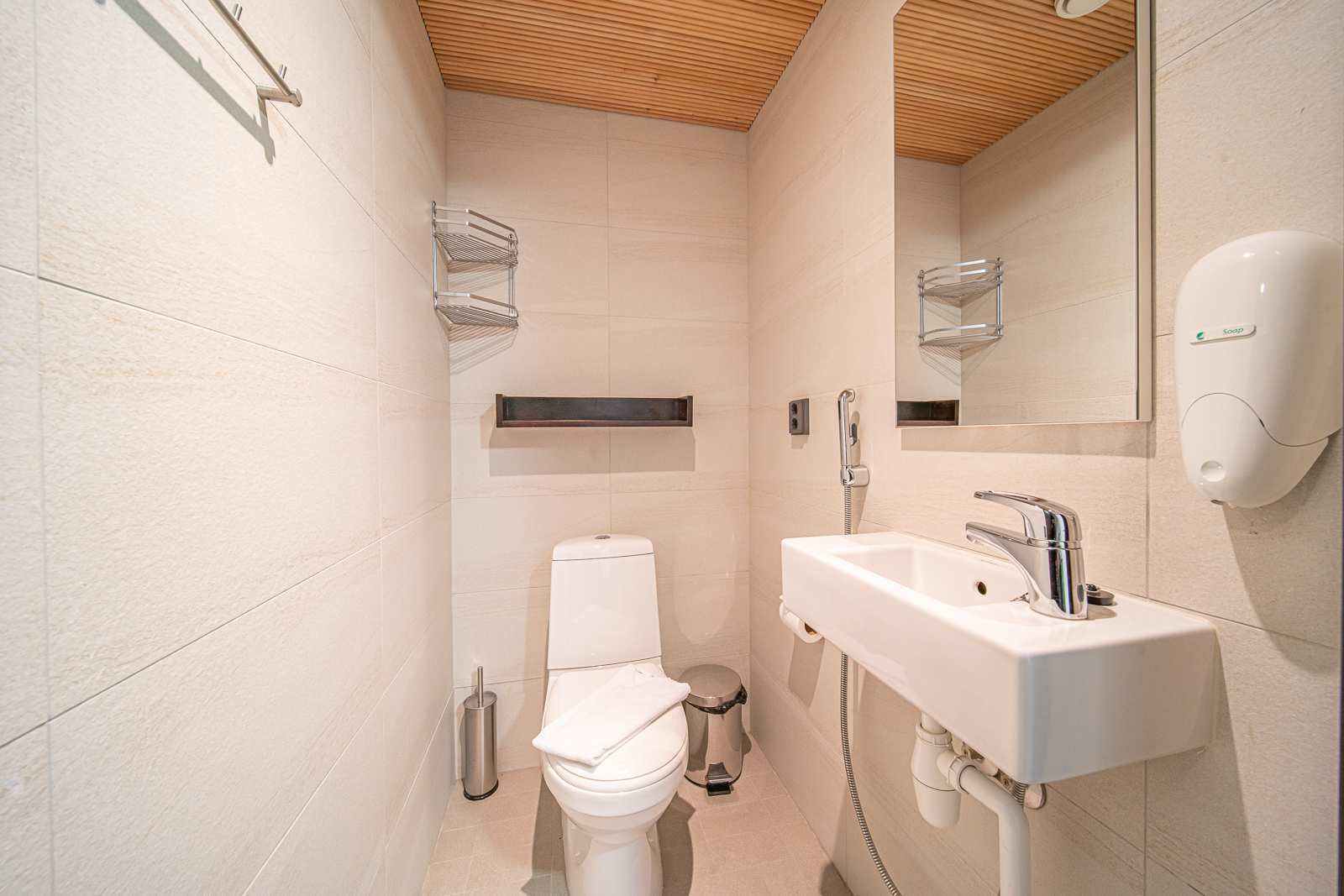 | Erillinen WC | Lattia: laatta Seinät: kaakeli Lukumäärä: 2 |