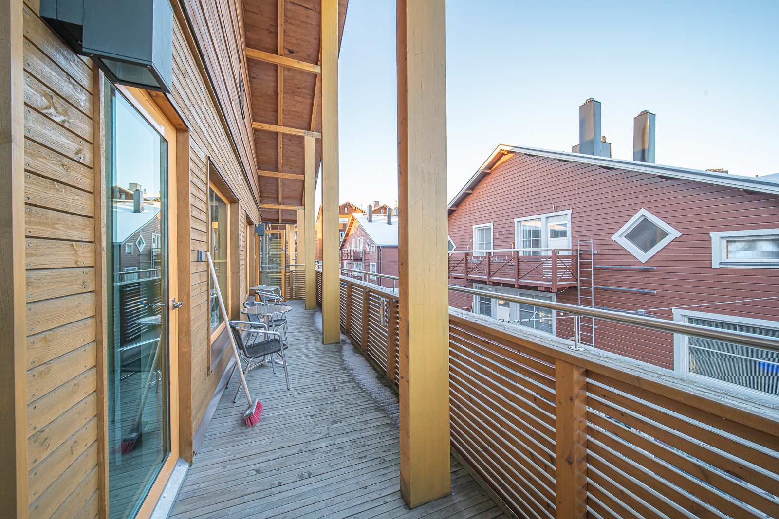 | Näkymät | Parveke kävelykadulle (Torikujalle) ja eturinteiden suuntaan. |