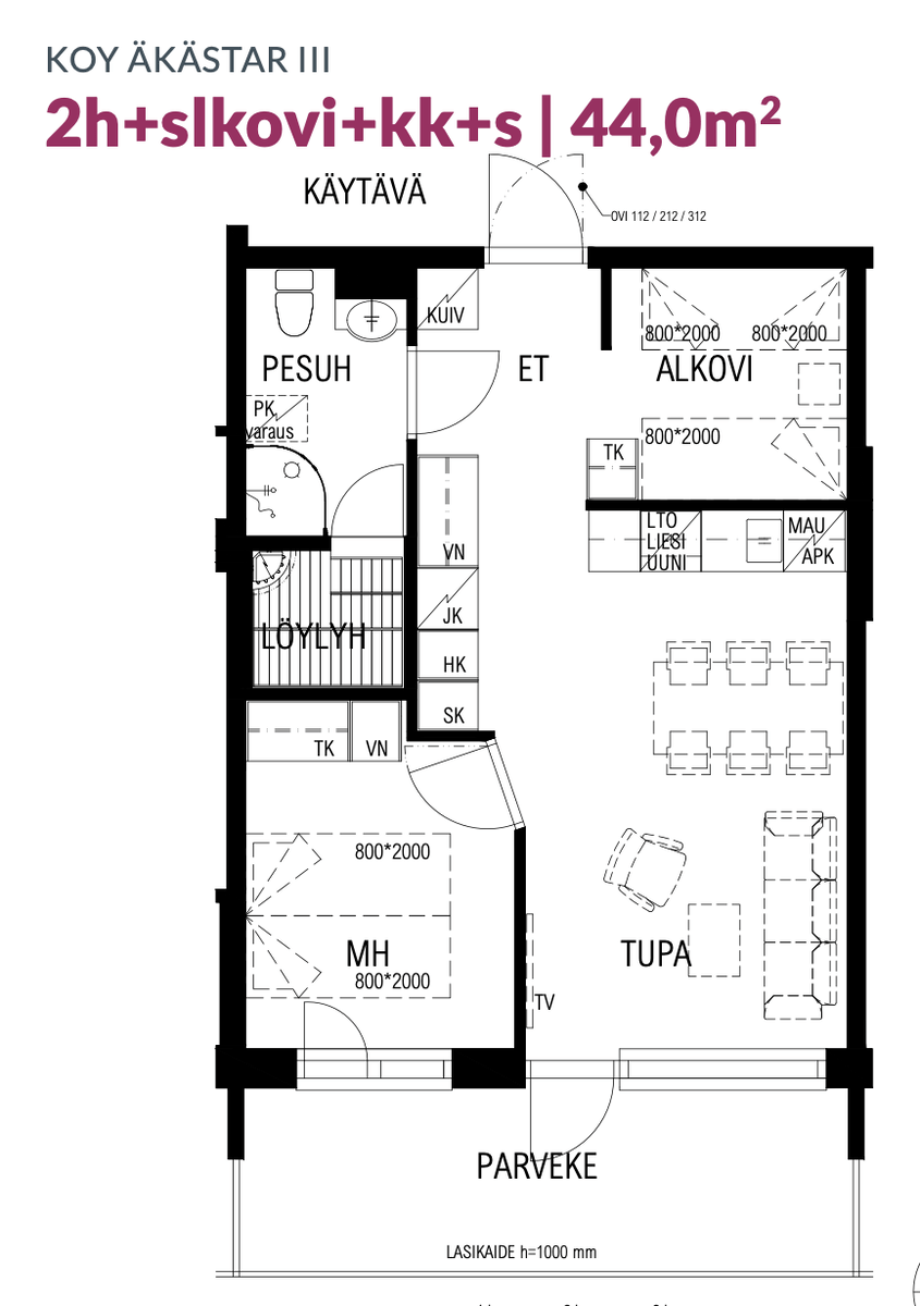 | Huoneistoselitelmä | 2h+alkovi+kk+s |
