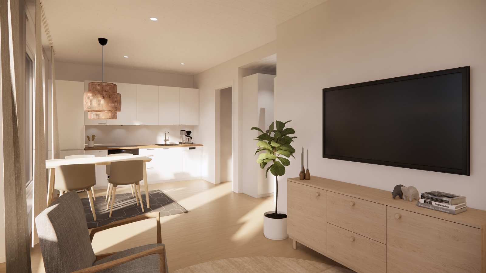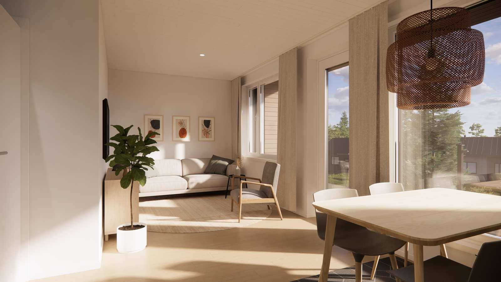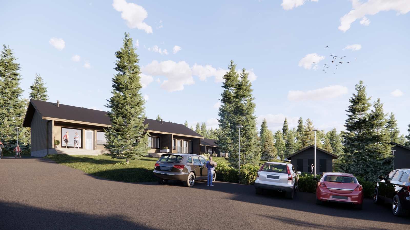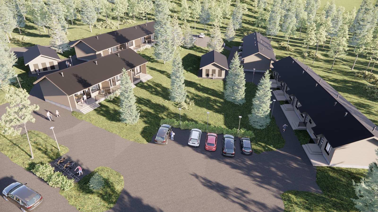 Huoneistojen modernit ja avarat oleskelutilat avautuvat ympäröivään mäntymetsään, ja suuret terassit tuovat sisätiloihin luonnonrauhaa ja valoa. Kestävät ja tyylikkäät materiaalivalinnat varmistavat, että kodit kestävät aikaa ja tunturialueen vaihtelevia olosuhteita.