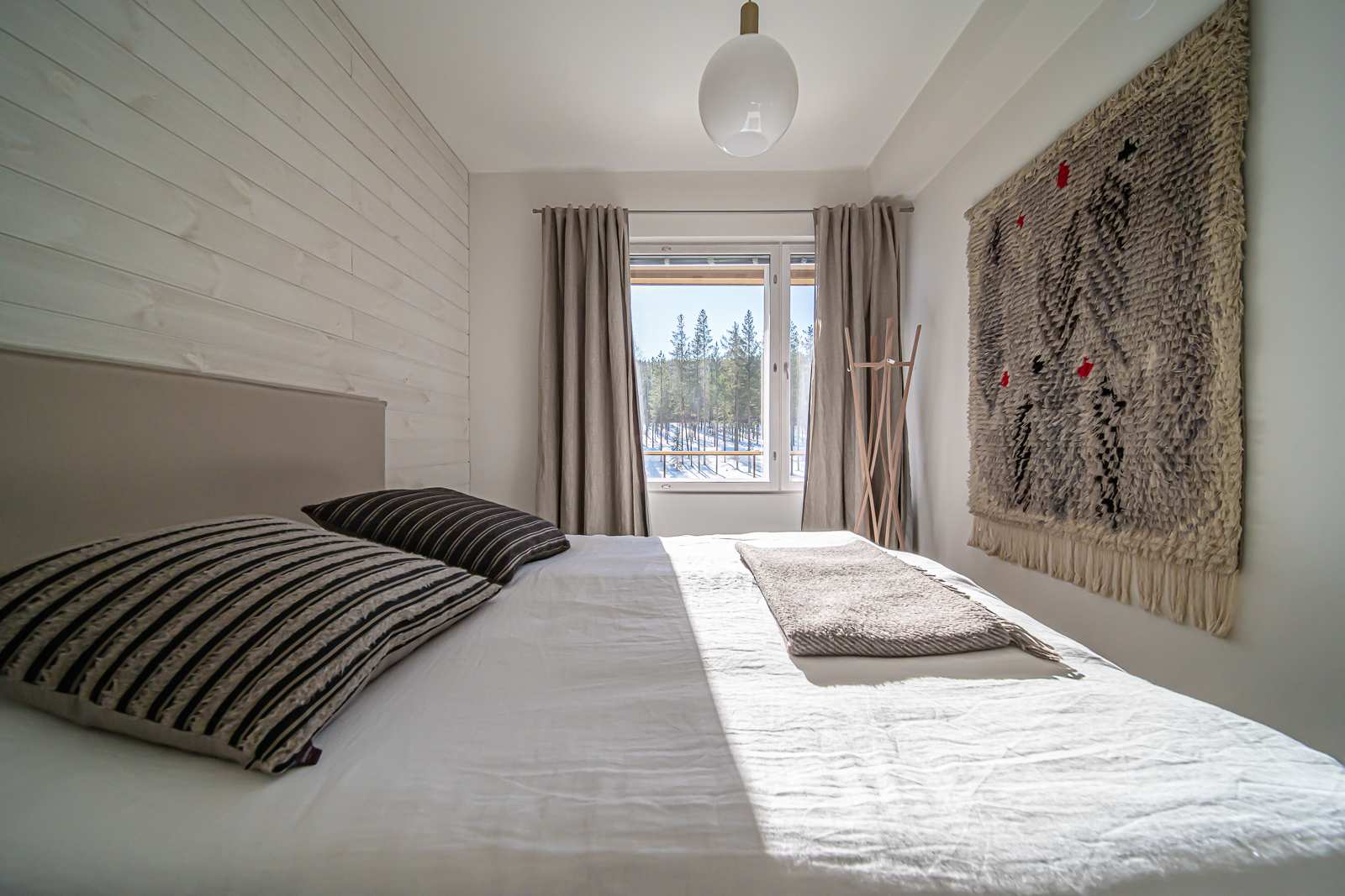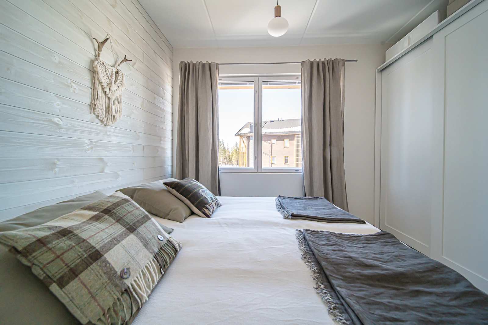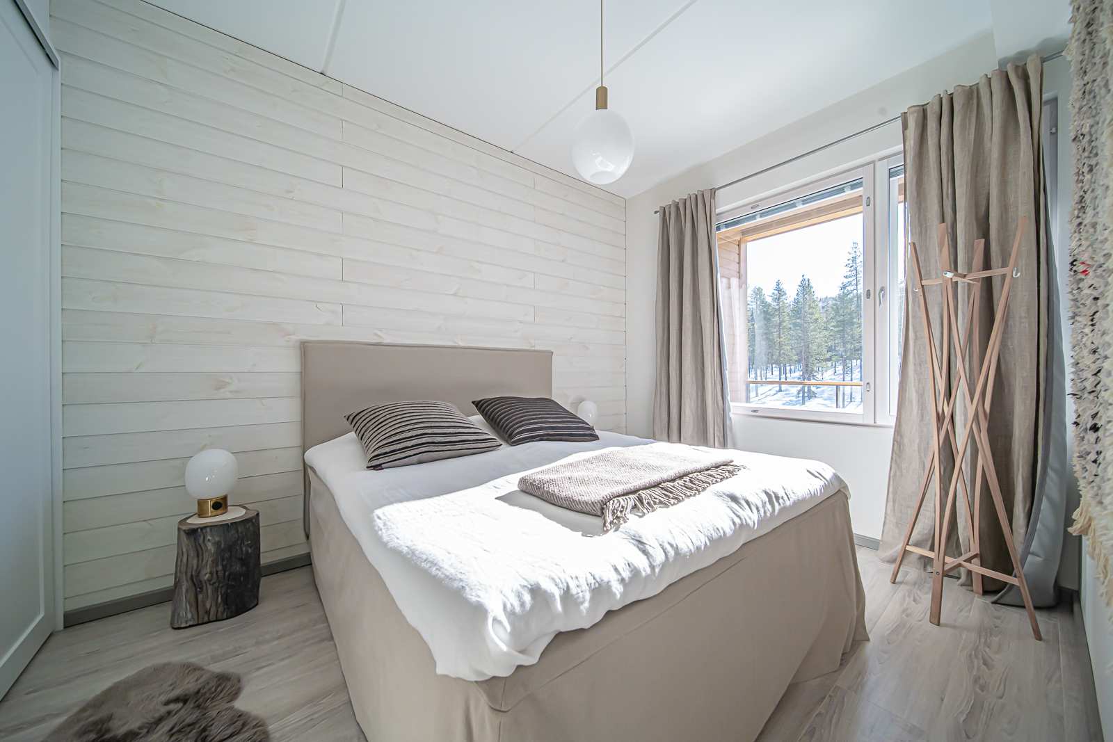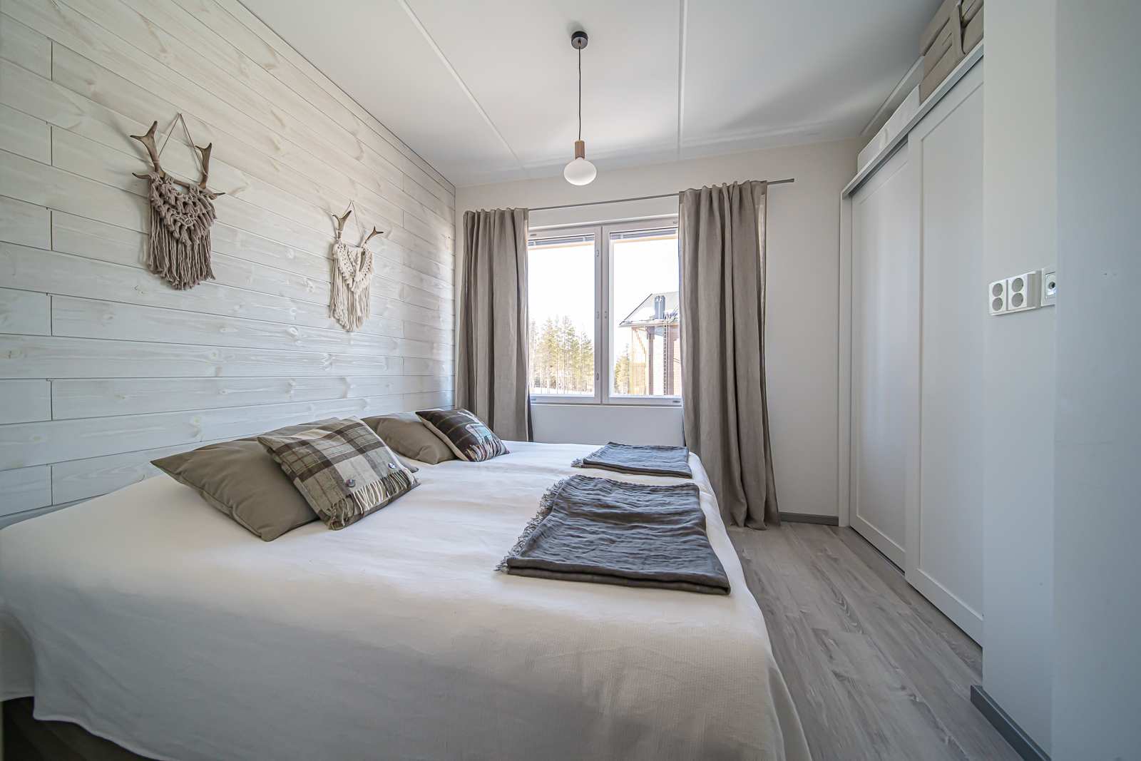 | Makuuhuone | Seinät: maalattu, puu Lattia: laminaatti |