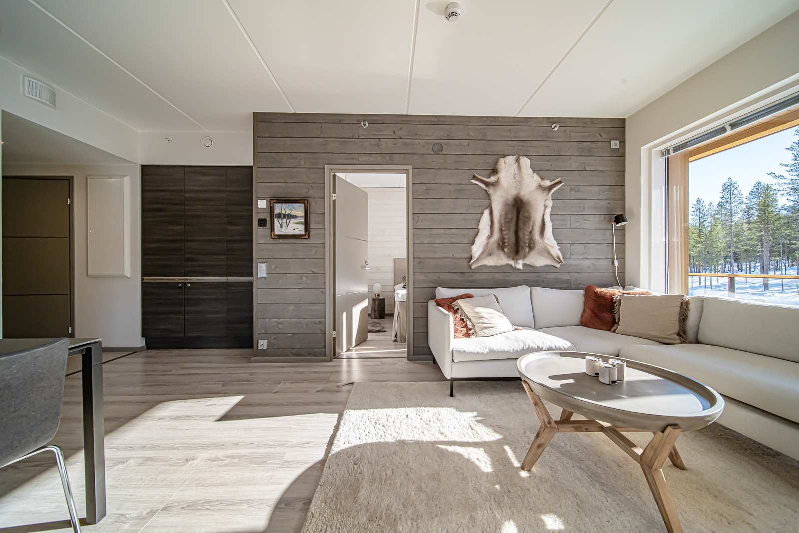 | Olohuone | Seinät: maalattu, puu Lattia: laminaatti |
