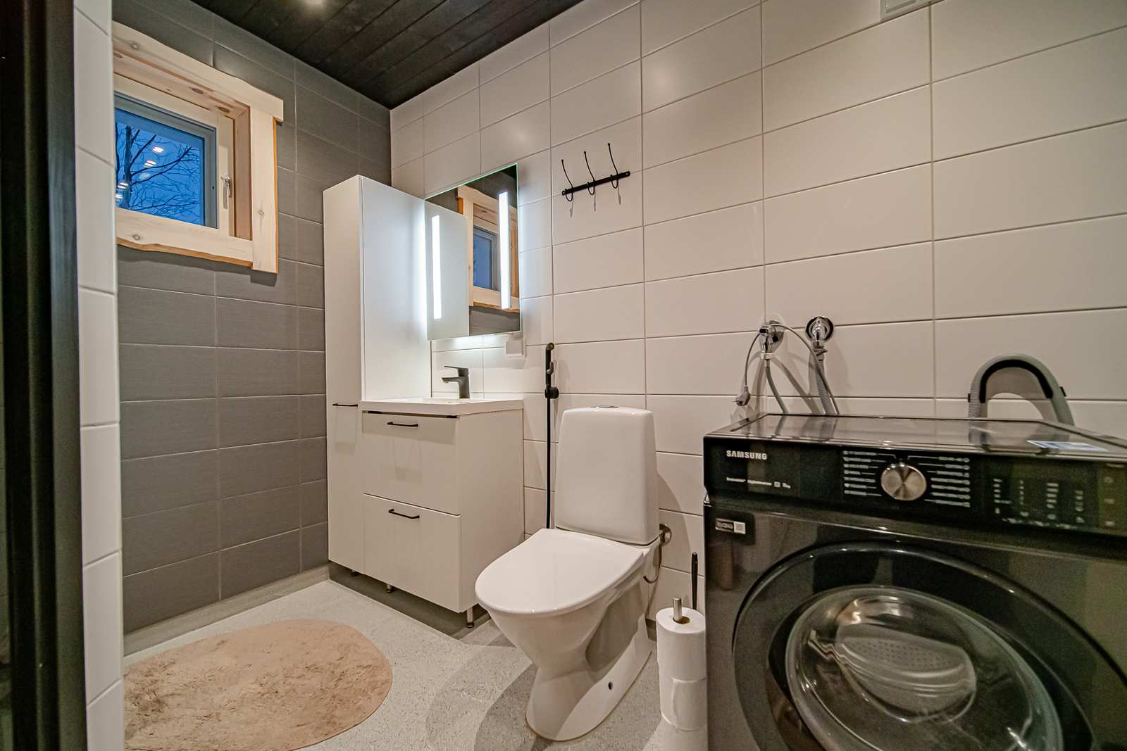 | Kylpyhuone | Varusteet: pesukone, wc-istuin Seinät: kaakeli Lattia: muu |