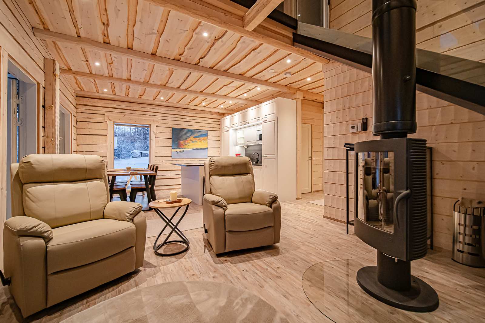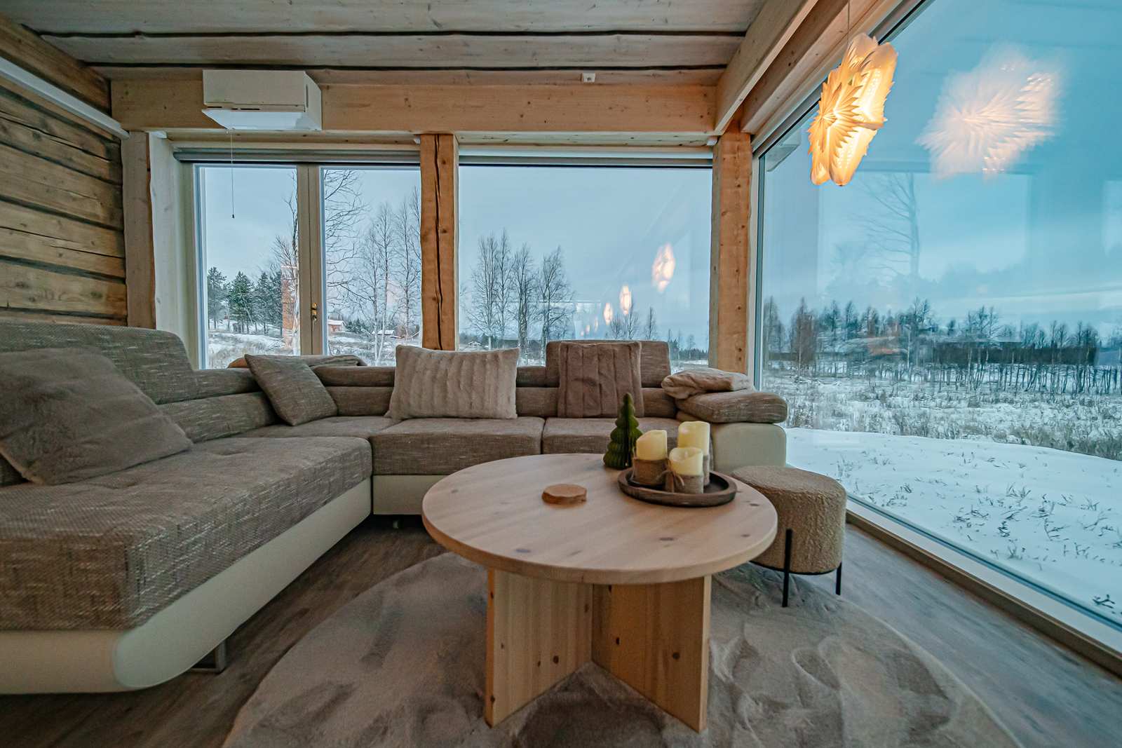 | Olohuone | Seinät: puu Lattia: vinyylikorkki |