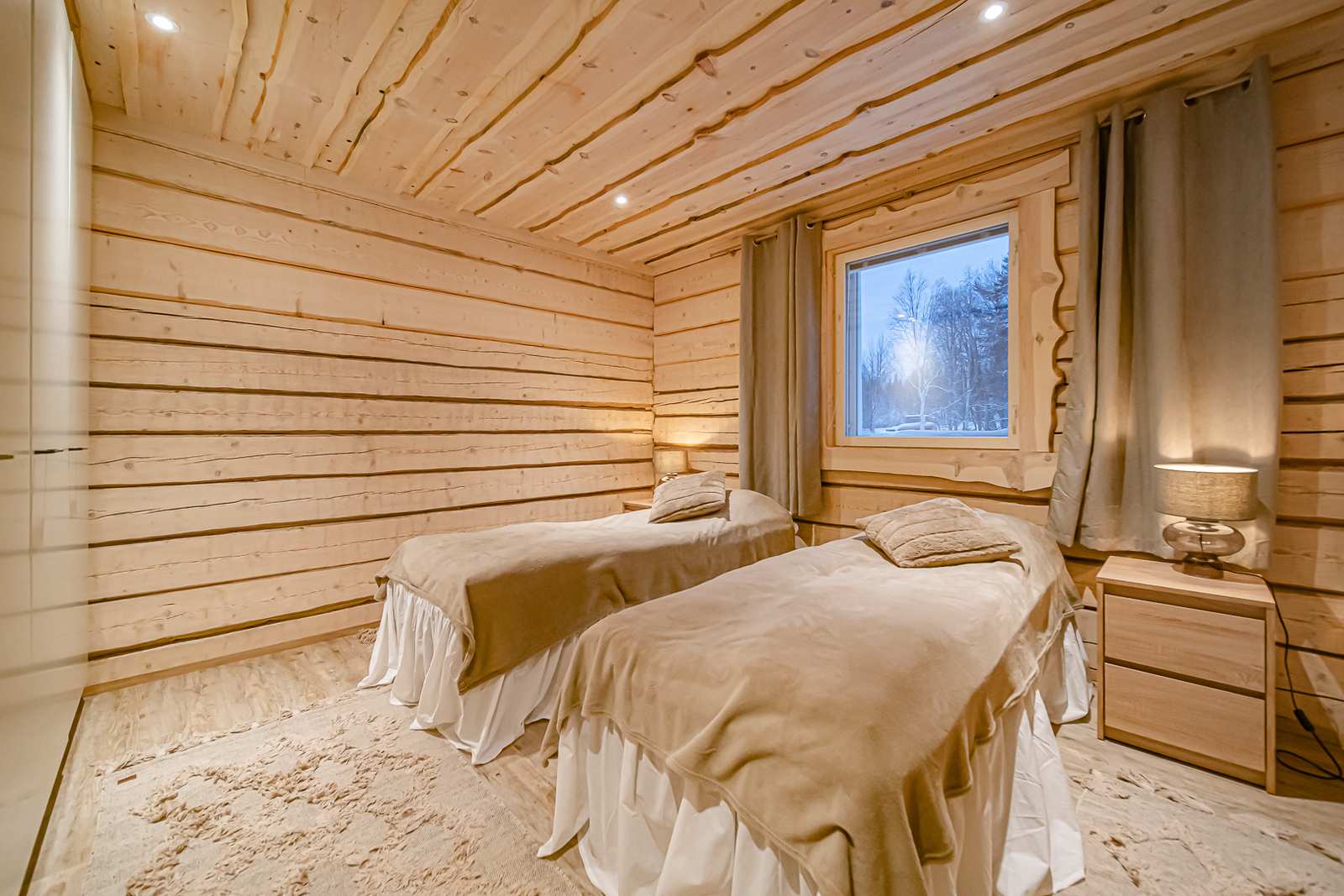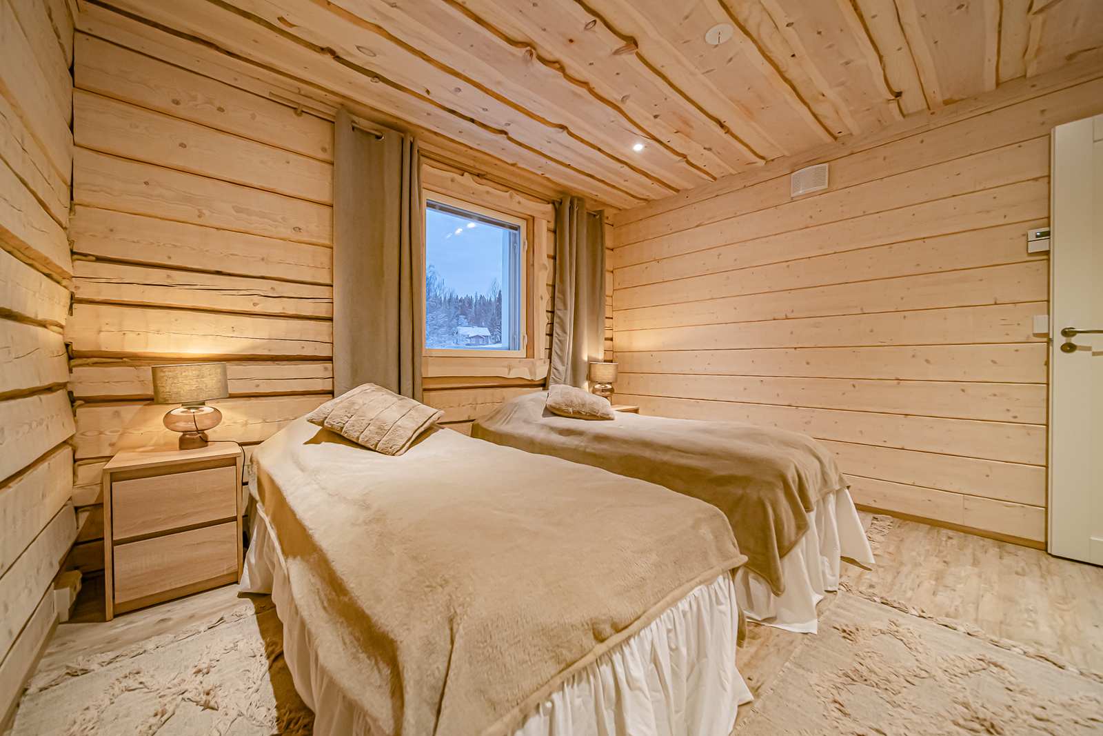 | Makuuhuone | Seinät: puu Lattia: vinyylikorkki |