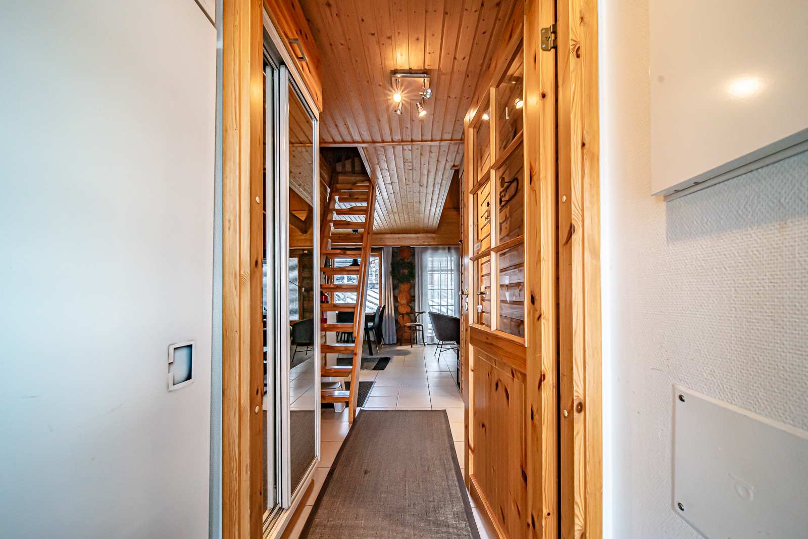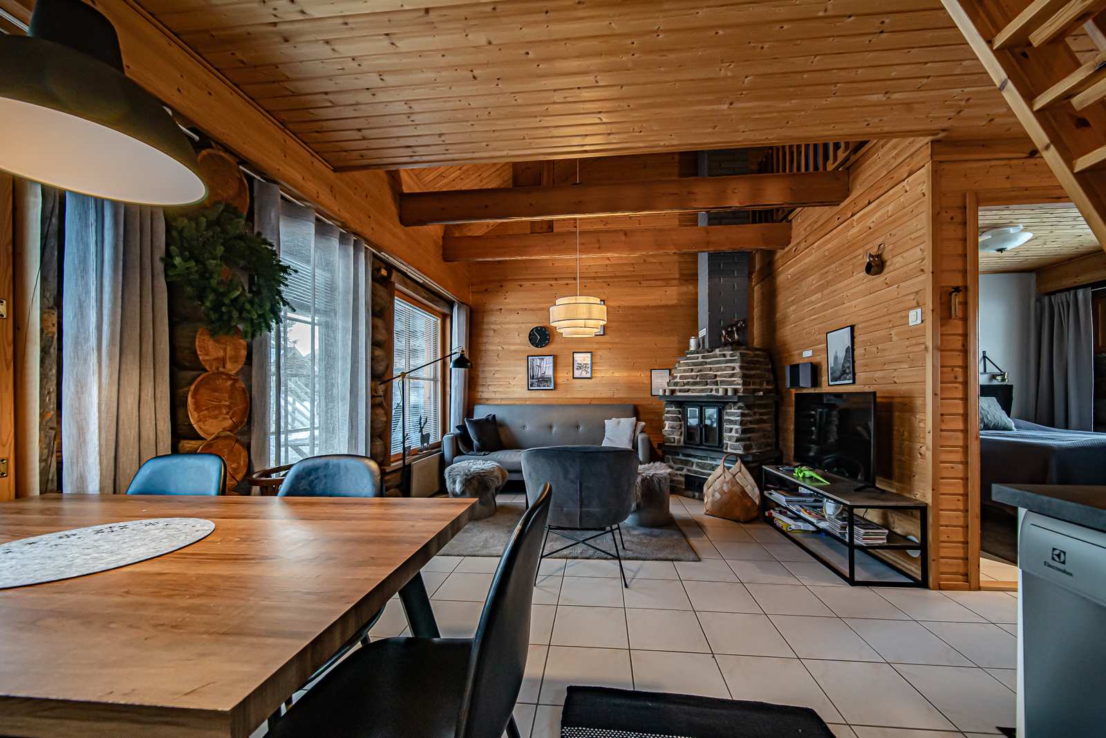 | Olohuone | Seinät: puu Lattia: laatta |