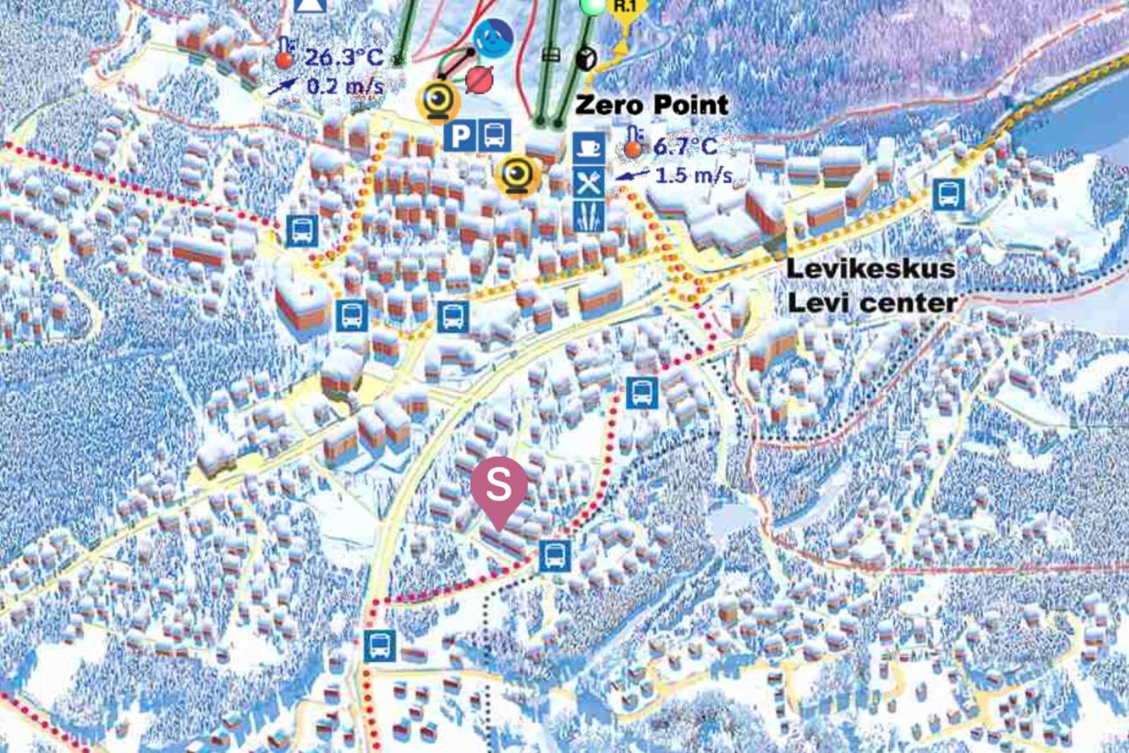 Hiihtoladuille ja kelkkareiteille pääset lähtemään helposti omalta loma-asunnolta. Skibussi kulkee vierestä, laskettelurinteisiinkään ei ole pitkä matka, kävellen pääsee hyvin.