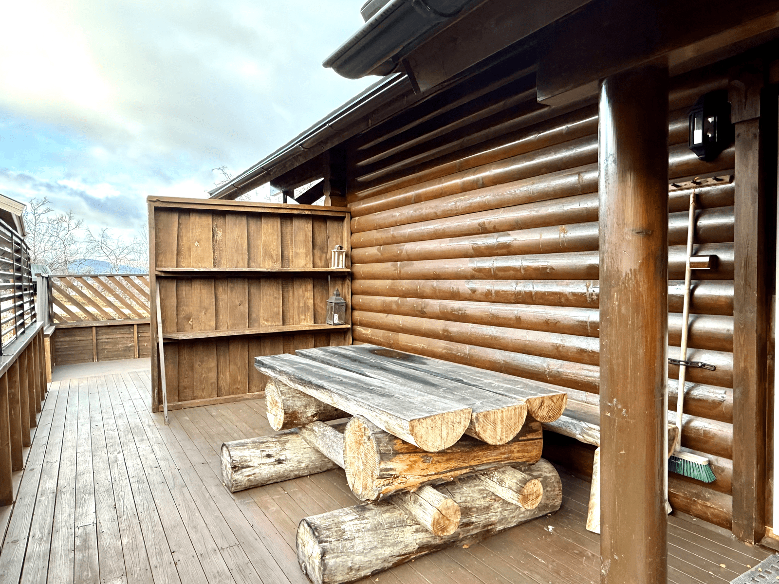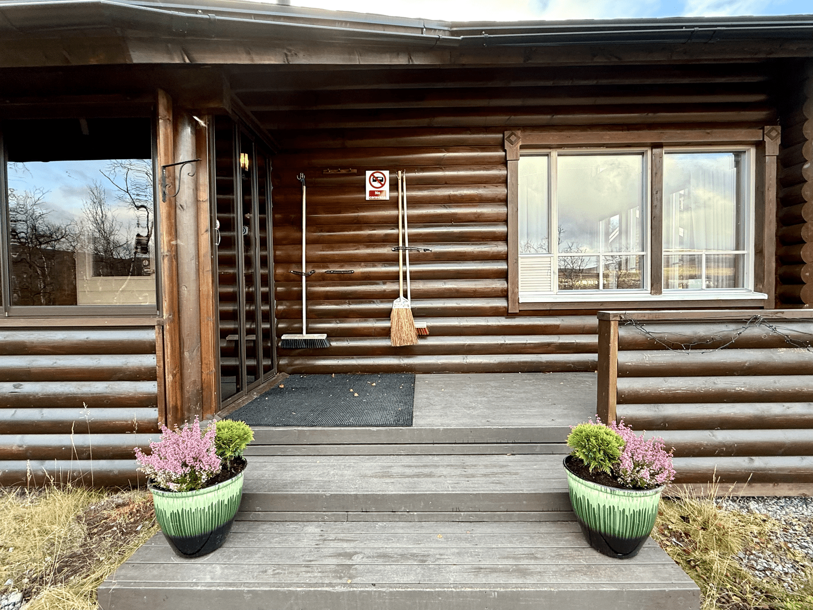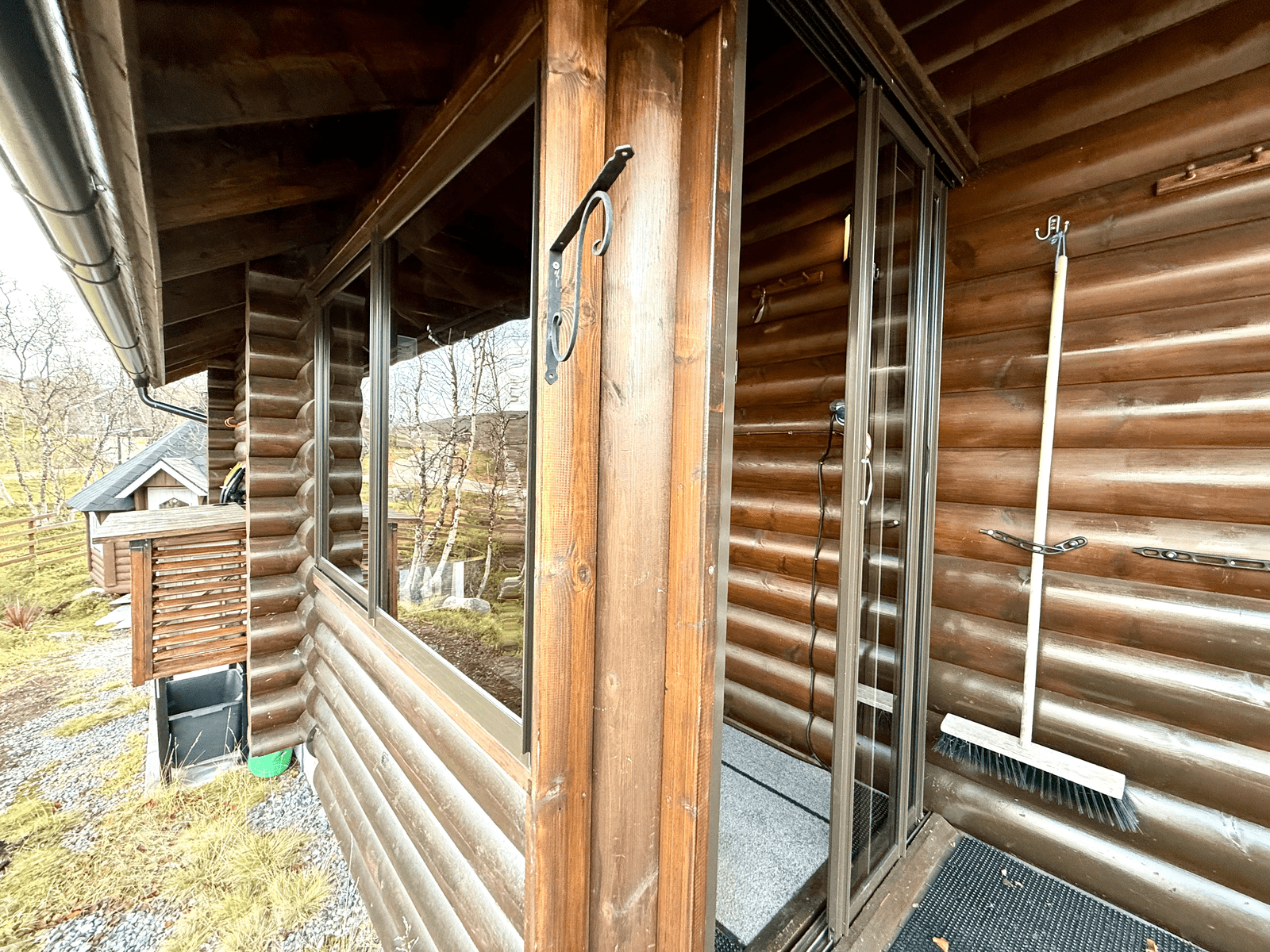 | Saunan kuvaus | Saunan pukuhuoneesta käynti terassille. |