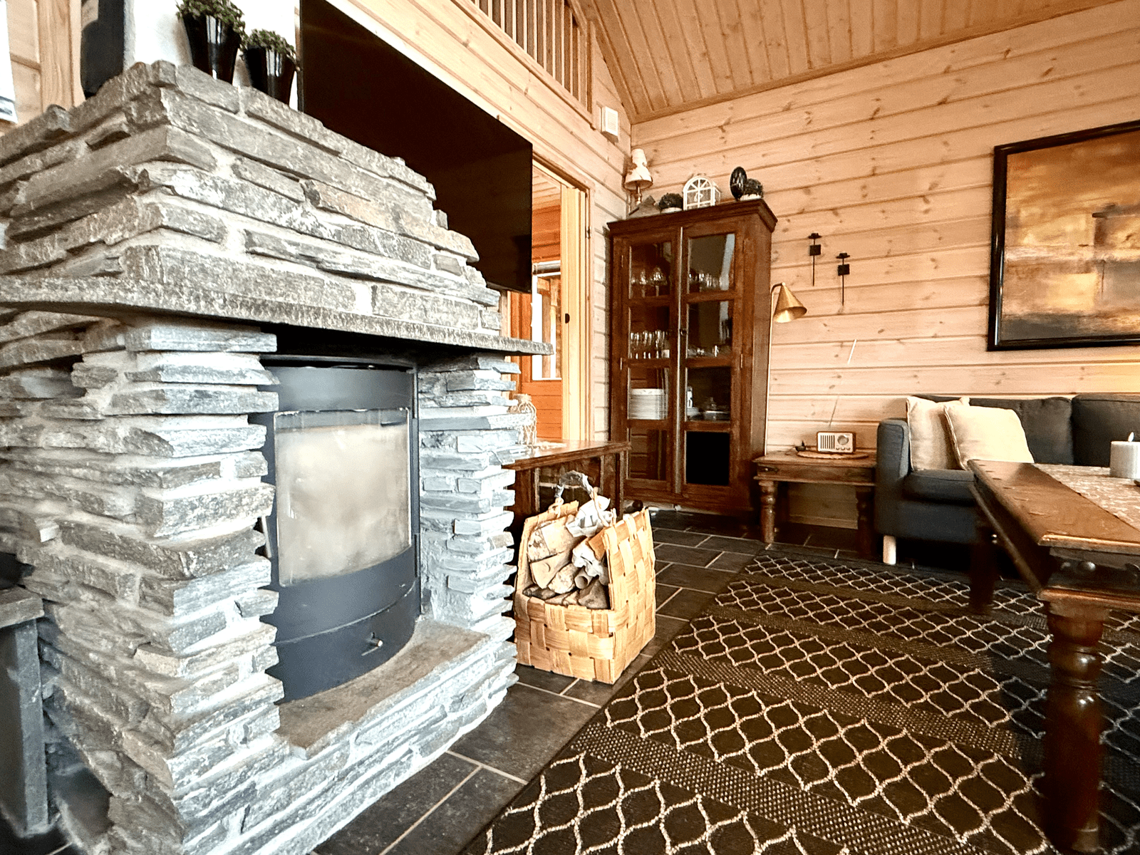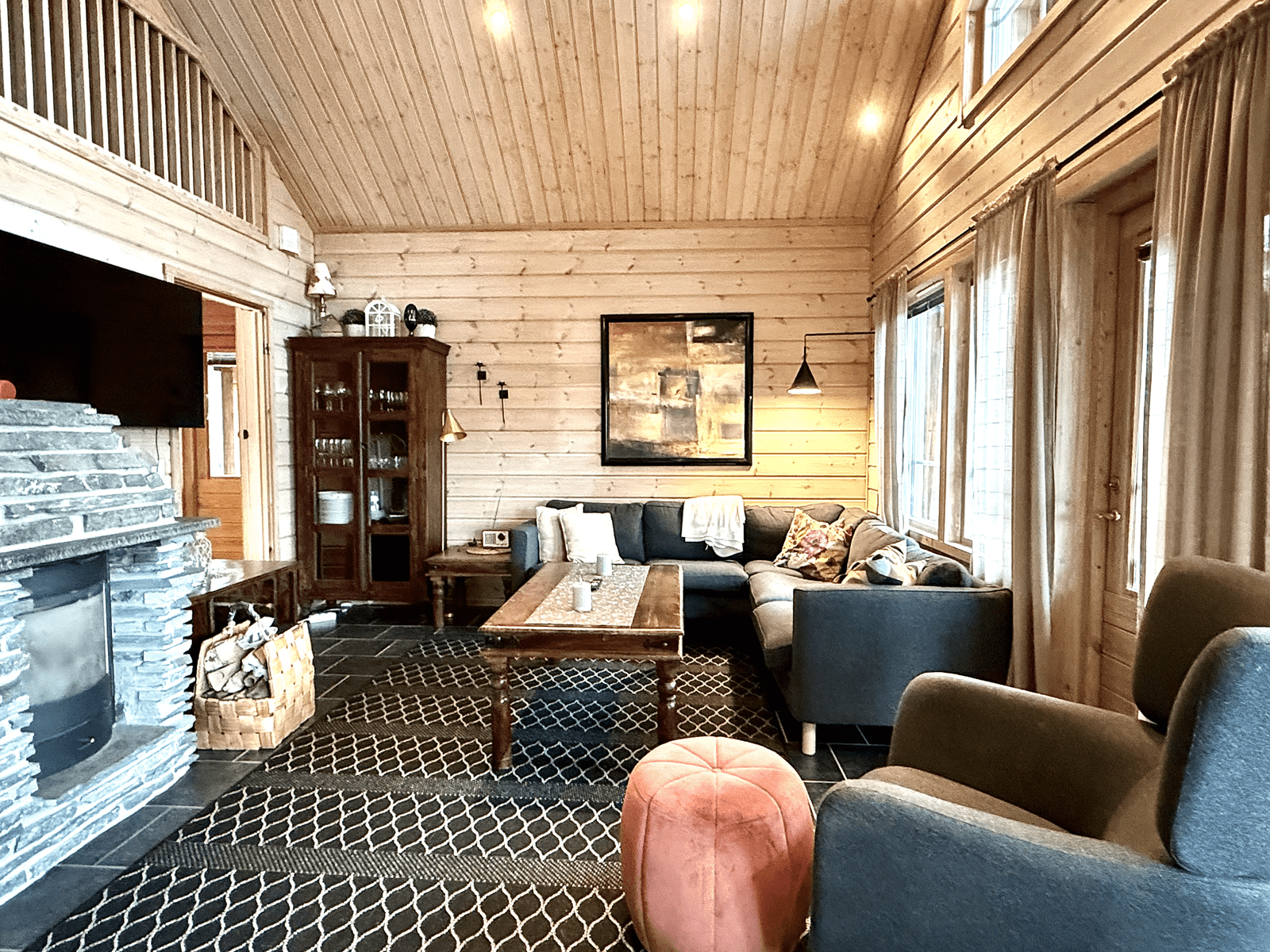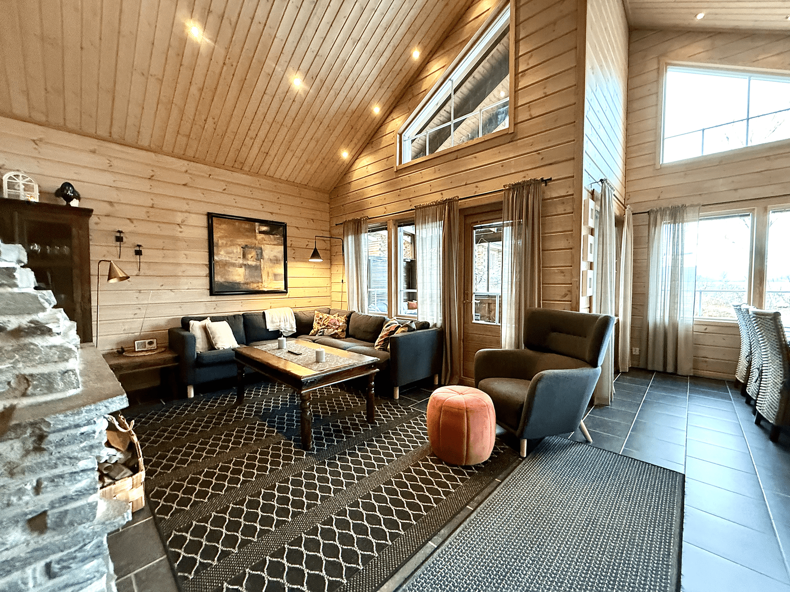 | Olohuone | Seinät: puu Lattia: laatta |