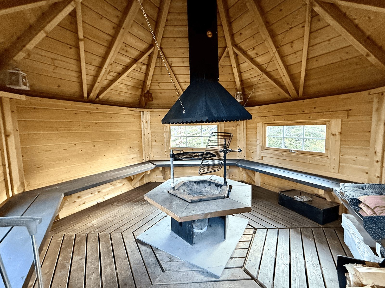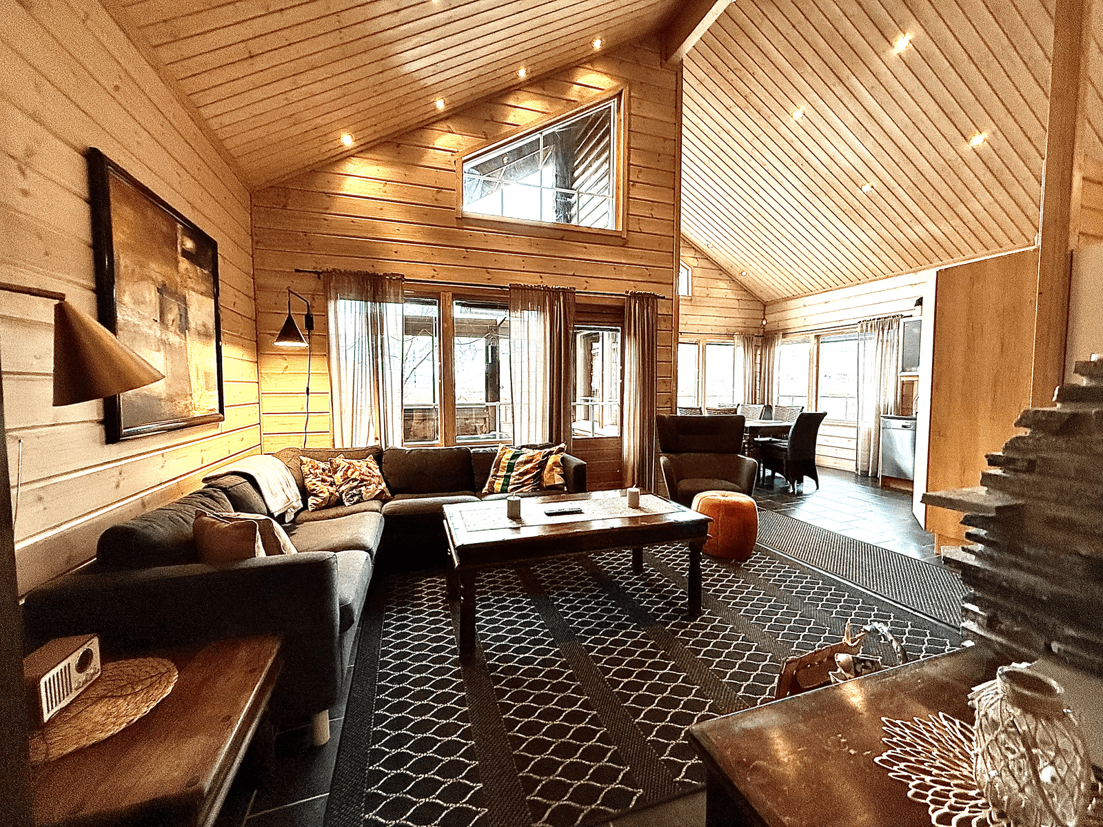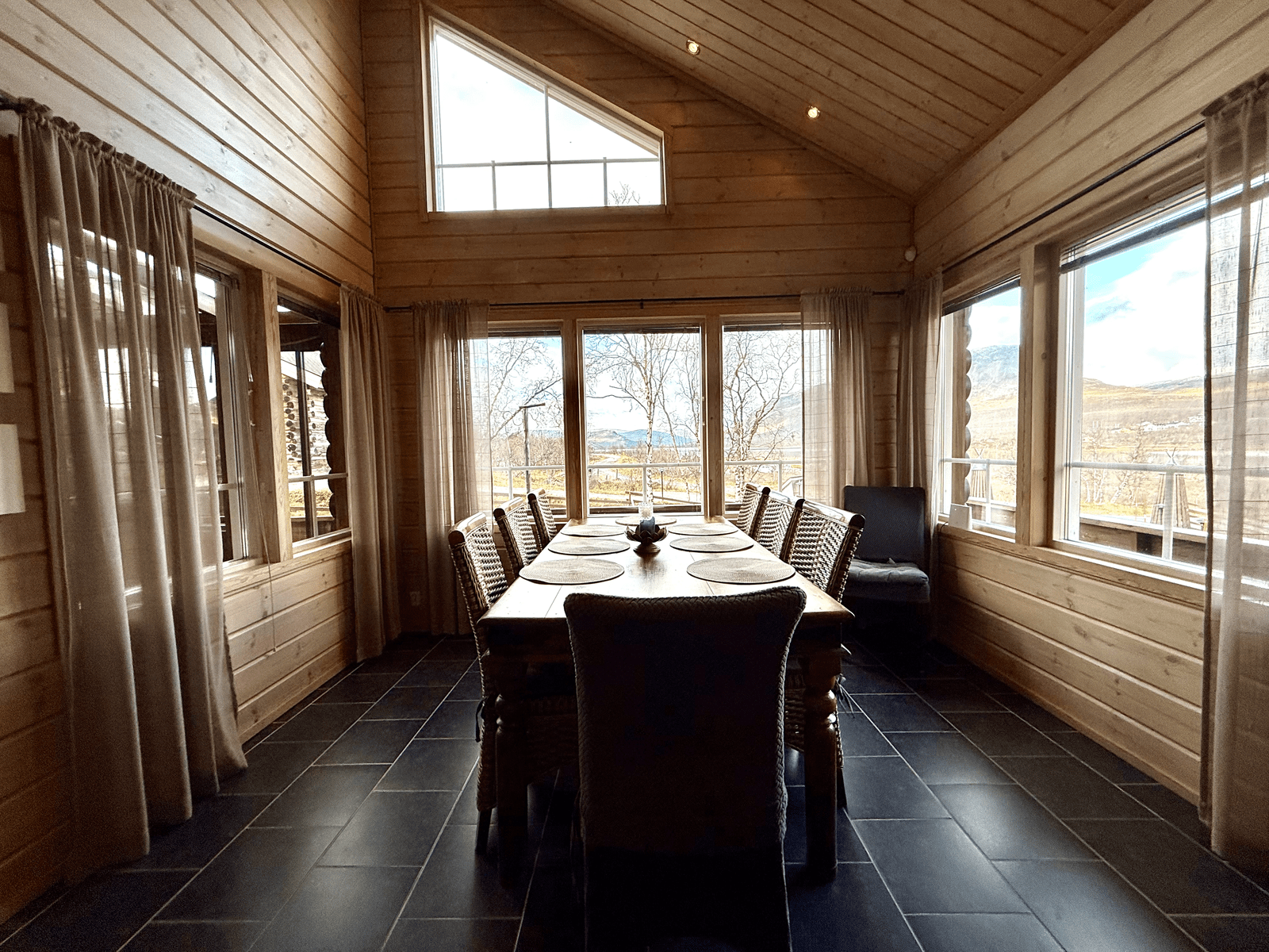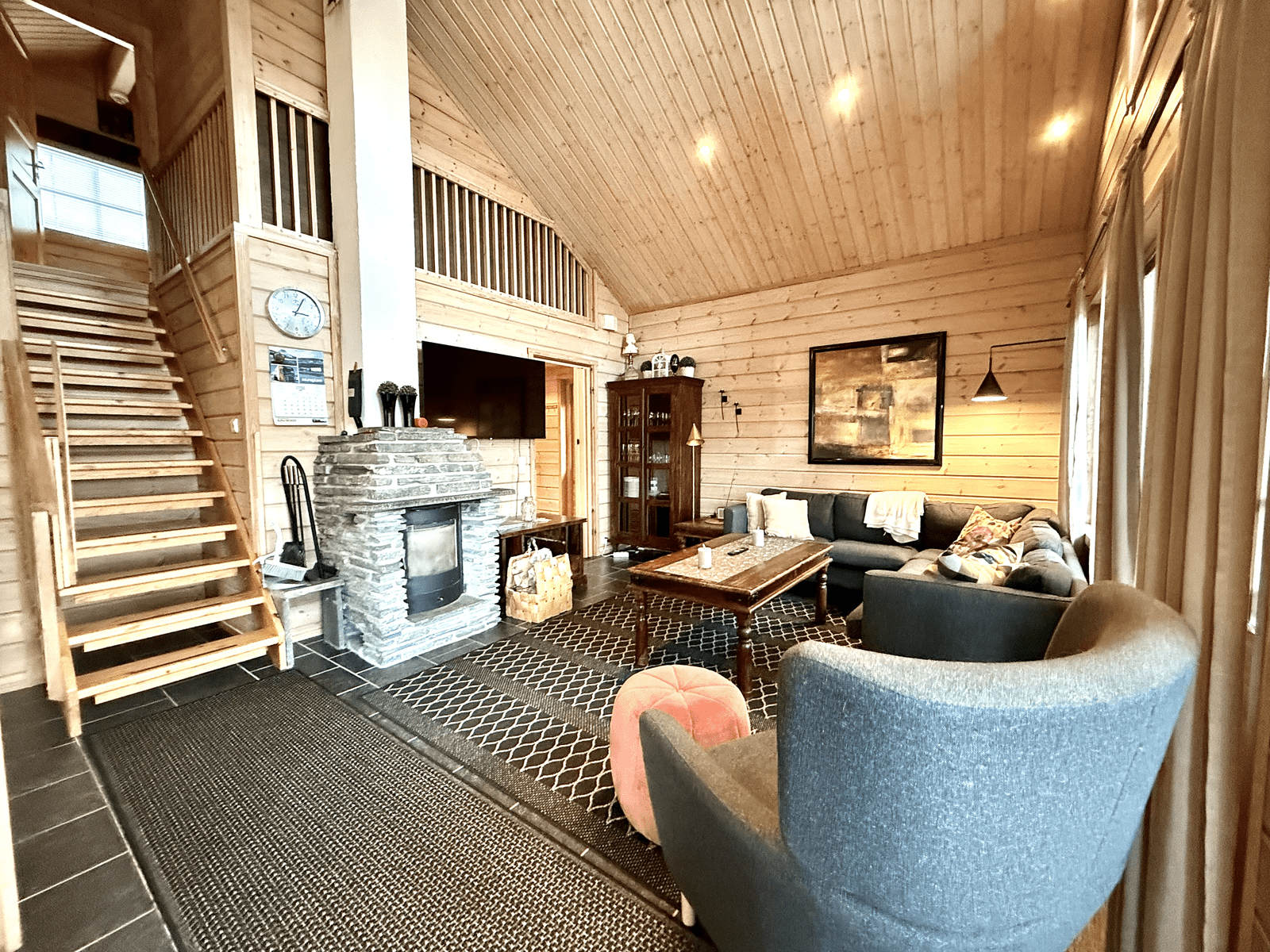 | Olohuone | Seinät: puu Lattia: laatta |