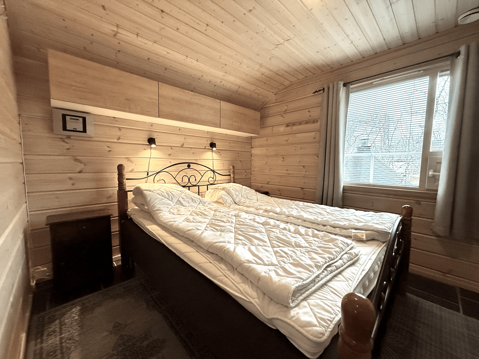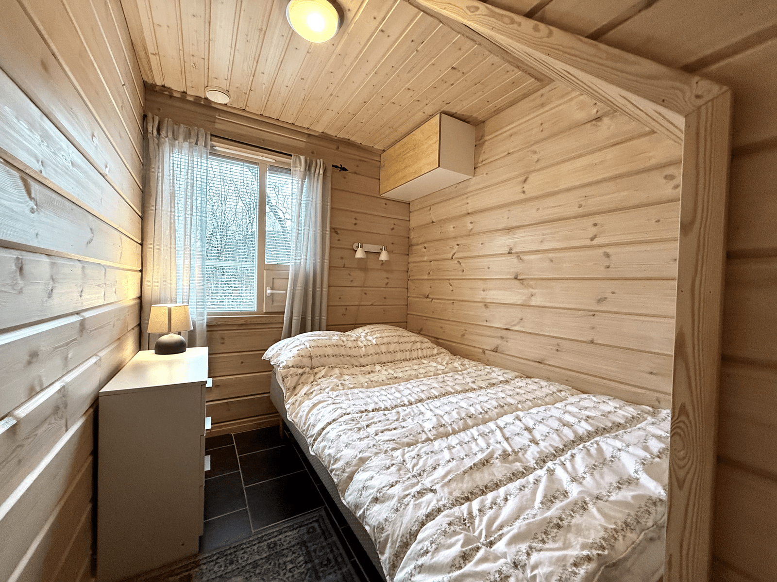 | Makuuhuone | Seinät: puu Lattia: laatta |