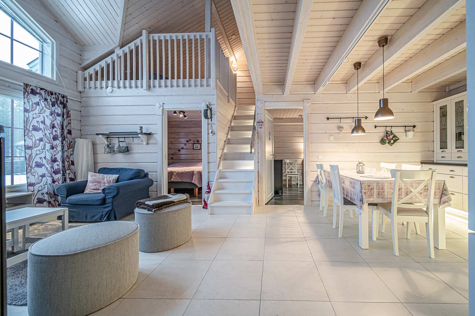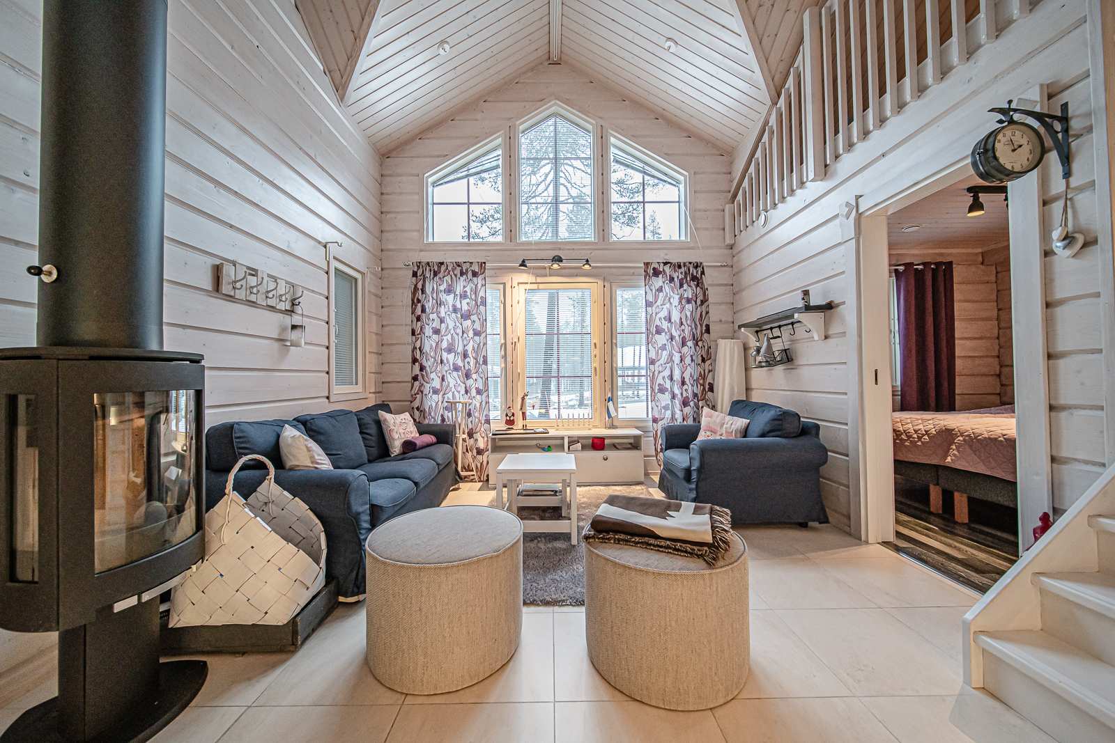 | Olohuone | Seinät: puu Lattia: laatta |