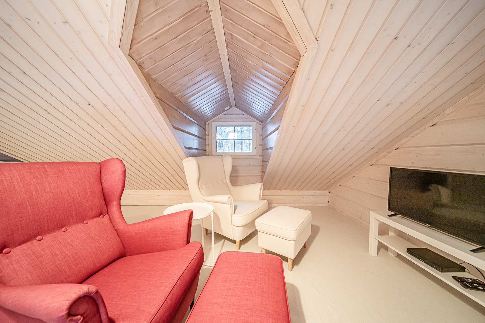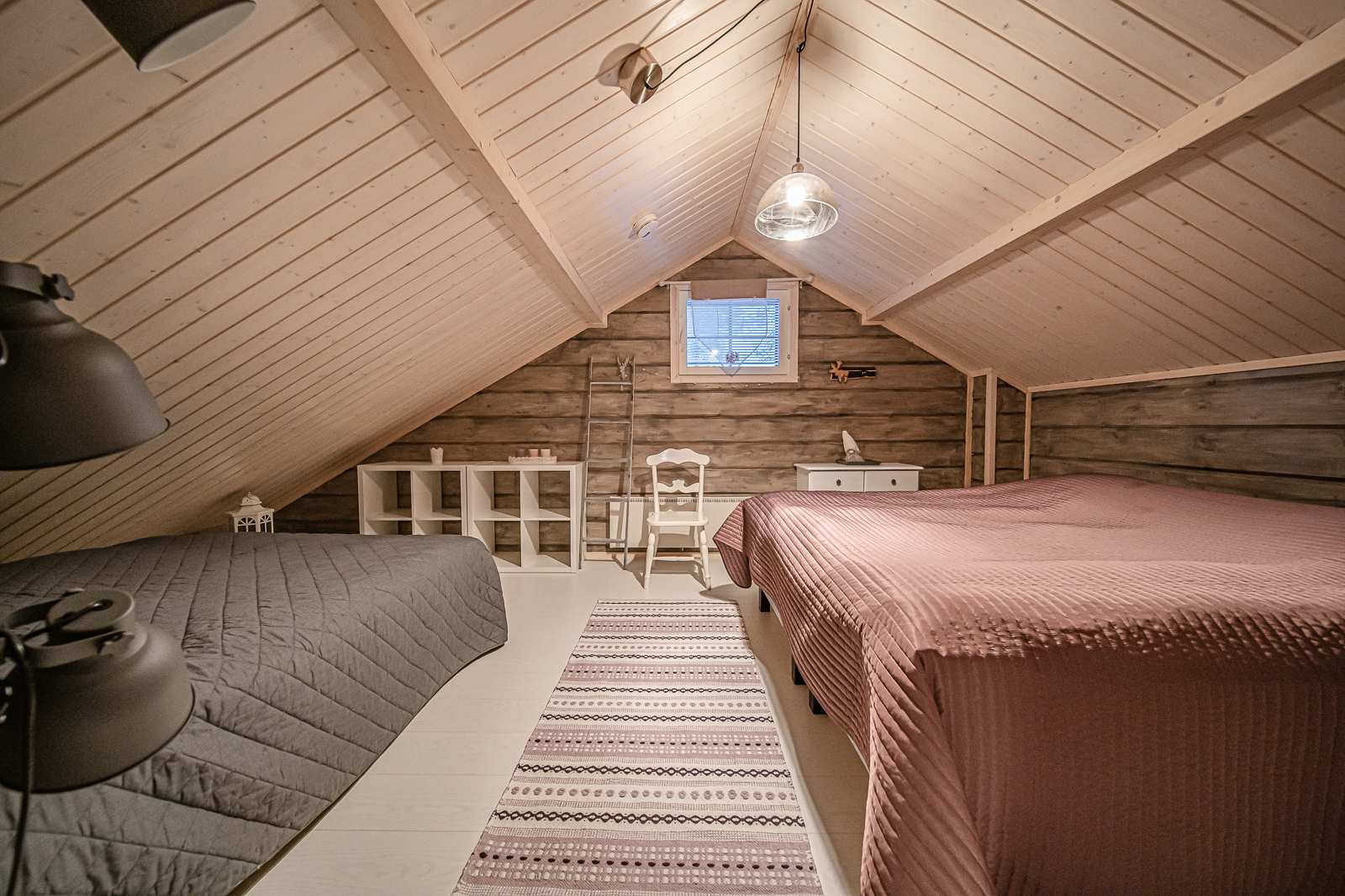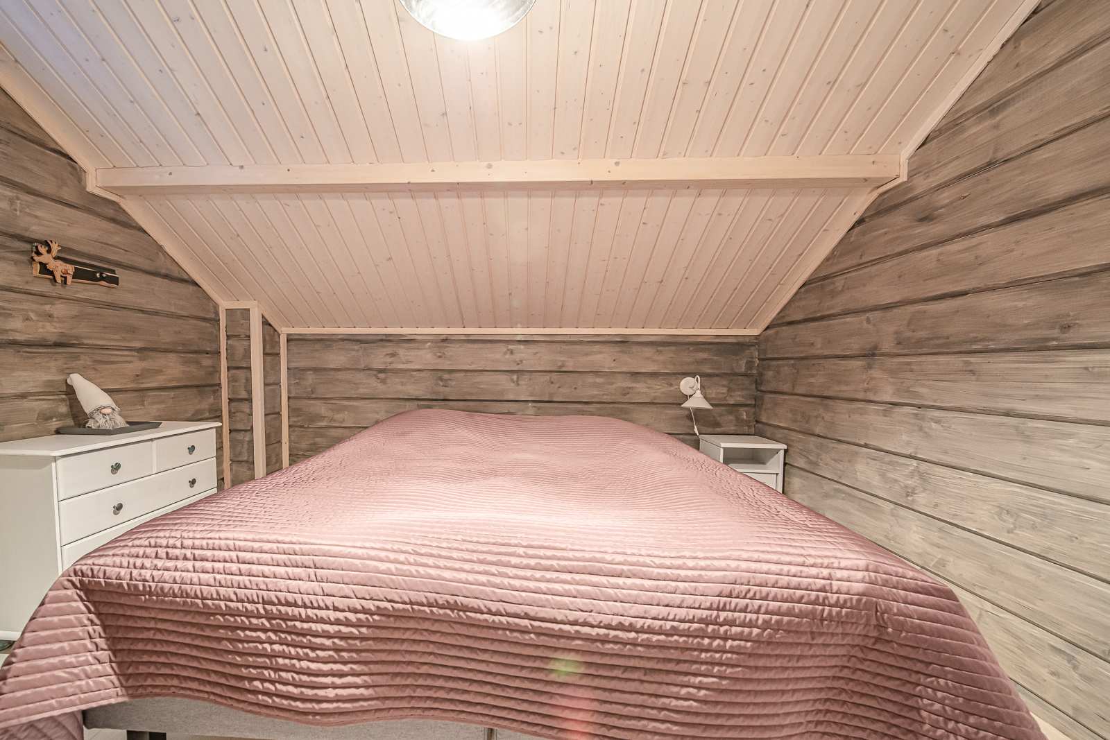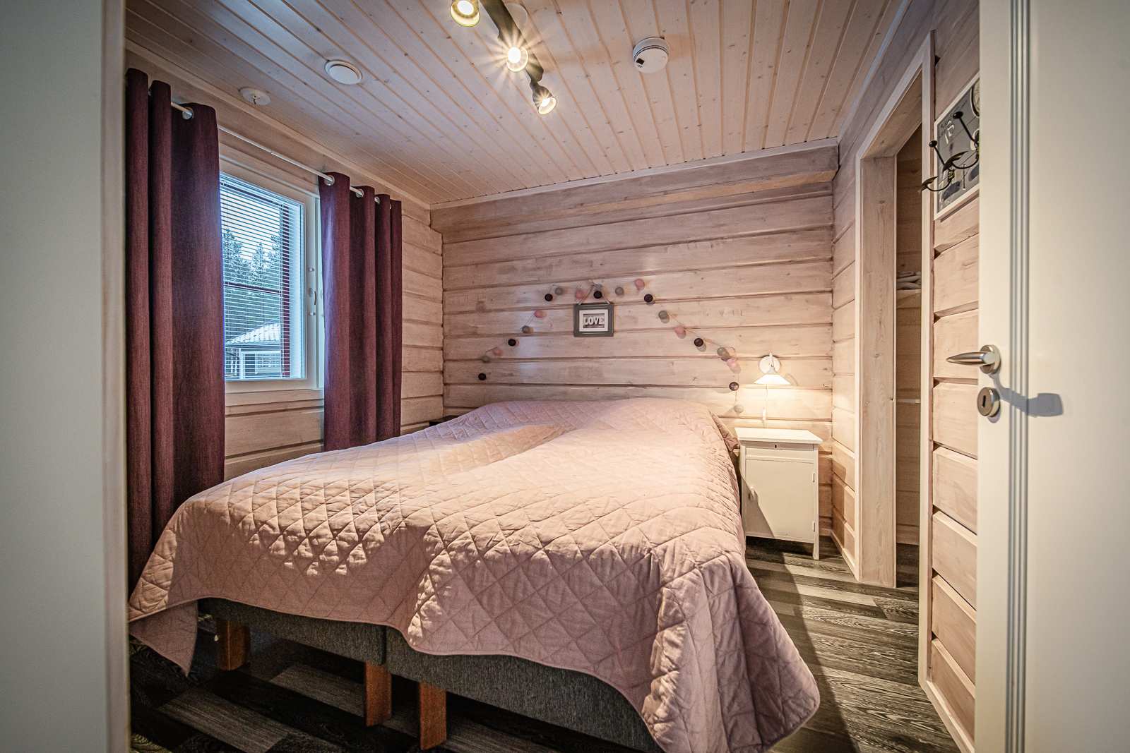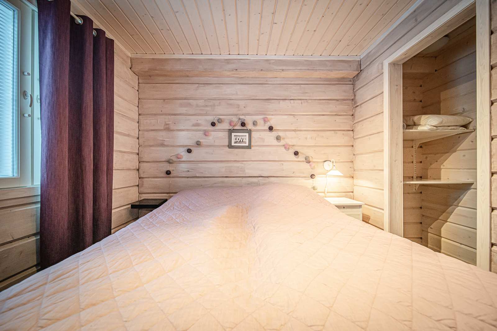 | Makuuhuone | Seinät: puu Lattia: laminaatti |
