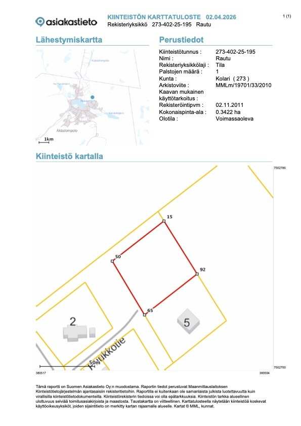 | Tontin pinta-ala | 3 422,0 m2 |