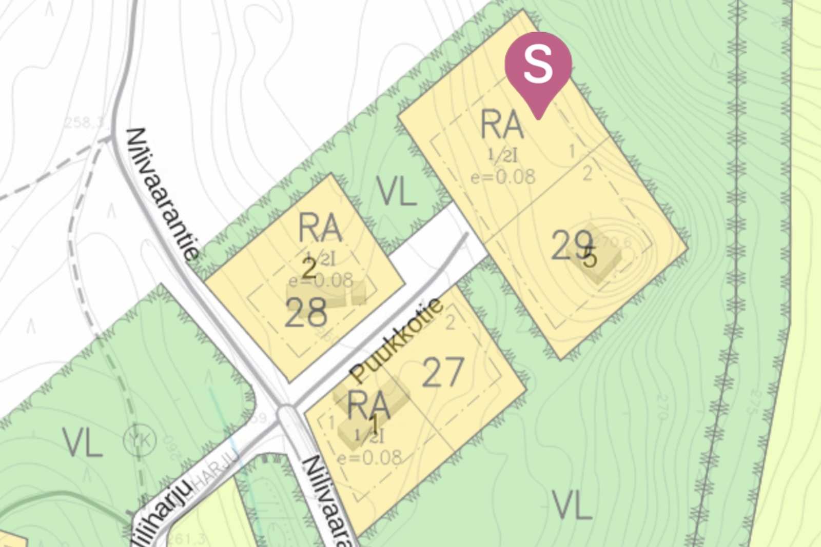 RA-alueilla saa rakennuspaikalle rakentaa enintään kaksi rakennusta. Etelään suuntaava rinnetontti, johon pystyy rakentamaan myös kahteen tasoon eli yhden rakennuksen alas ja yhden ylös.