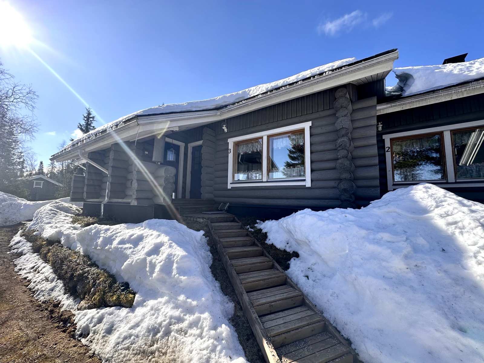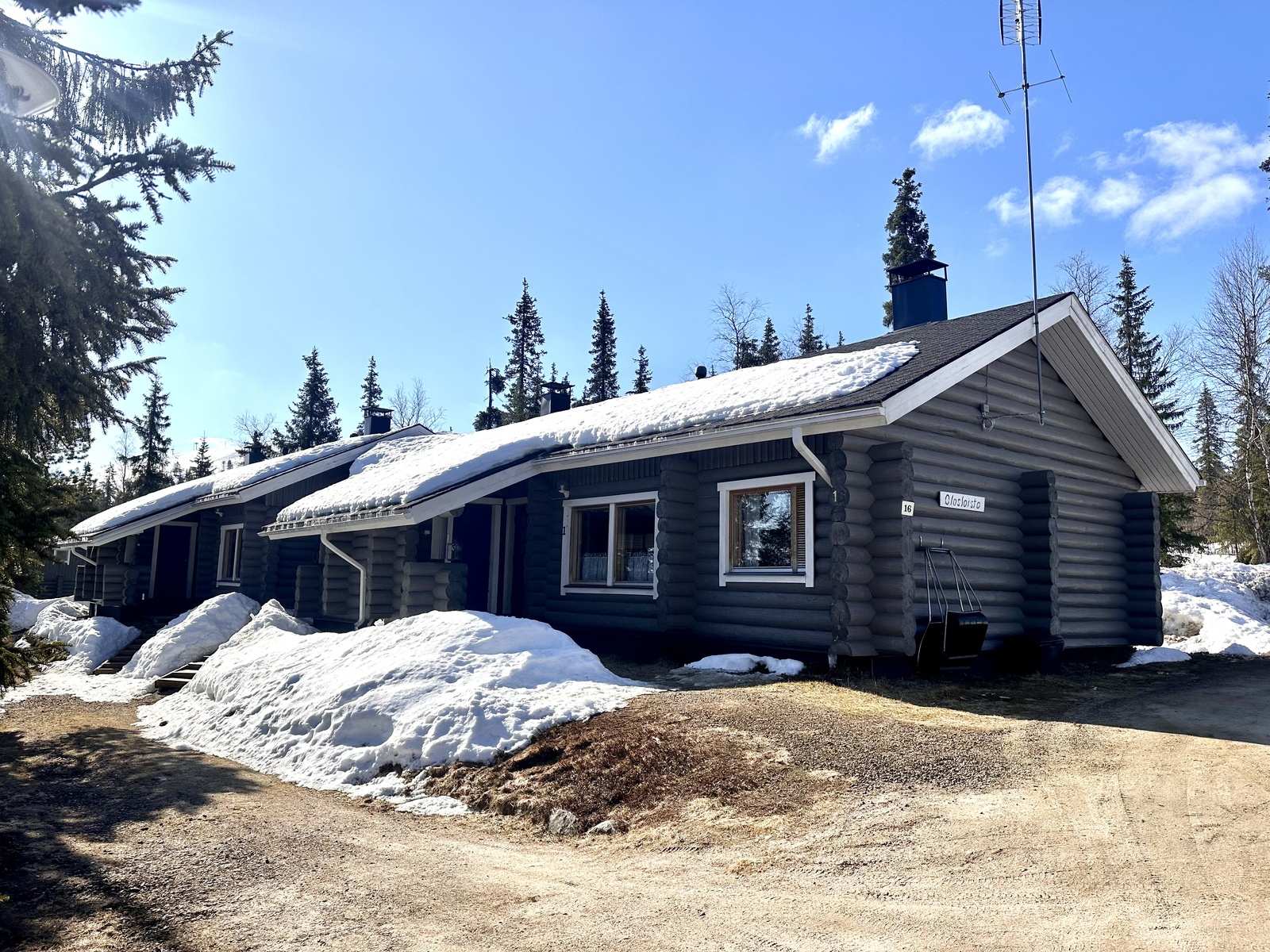 Neljän huoneiston rivitaloyhtiö, Oloksen hiihtokeskuksessa Muoniossa.