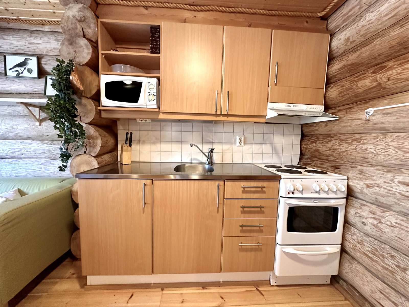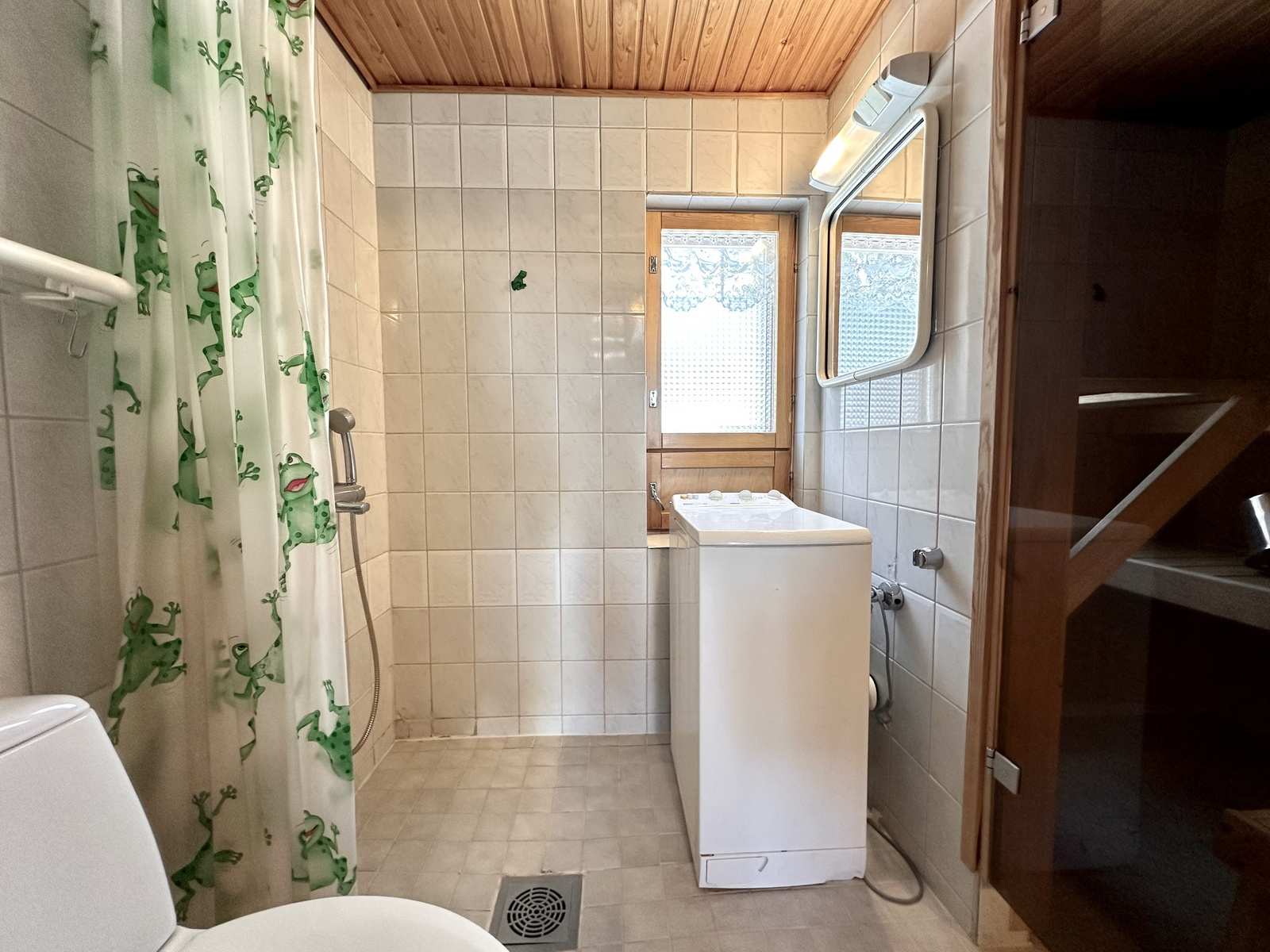 | Saunan pinnat | Seinät: puu Lattia: laatta |