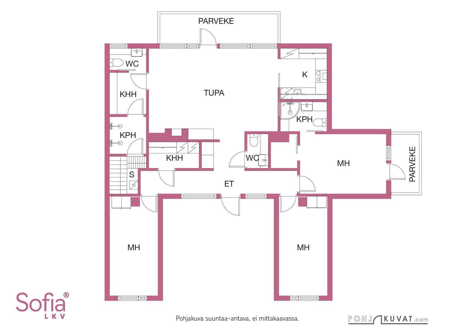 | Parveke | Suunta: pohjoinen, etelä, länsi Tyyppi: ulostyönnetty |