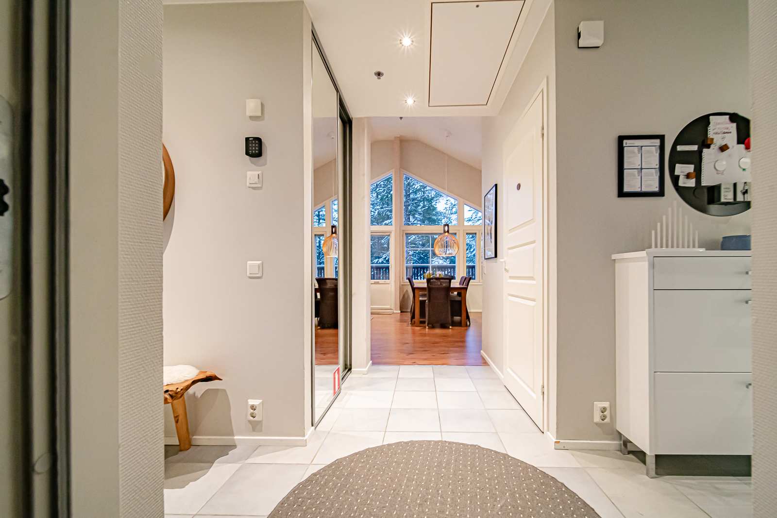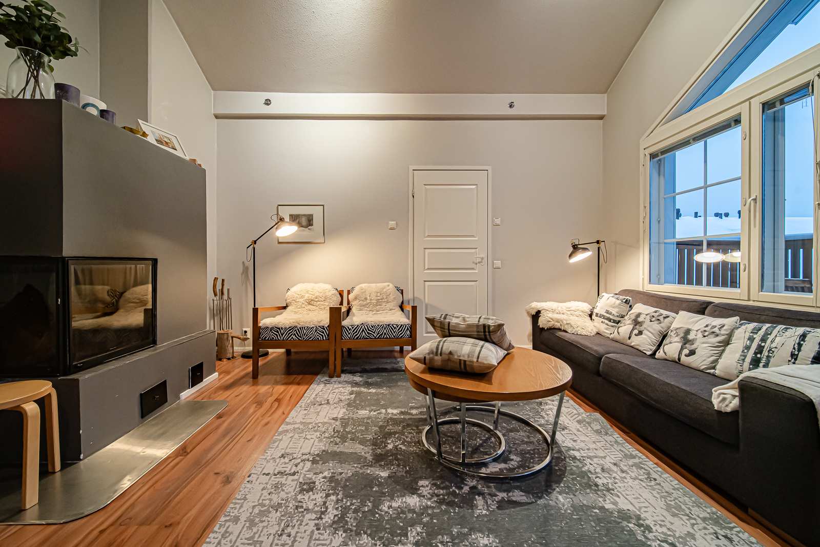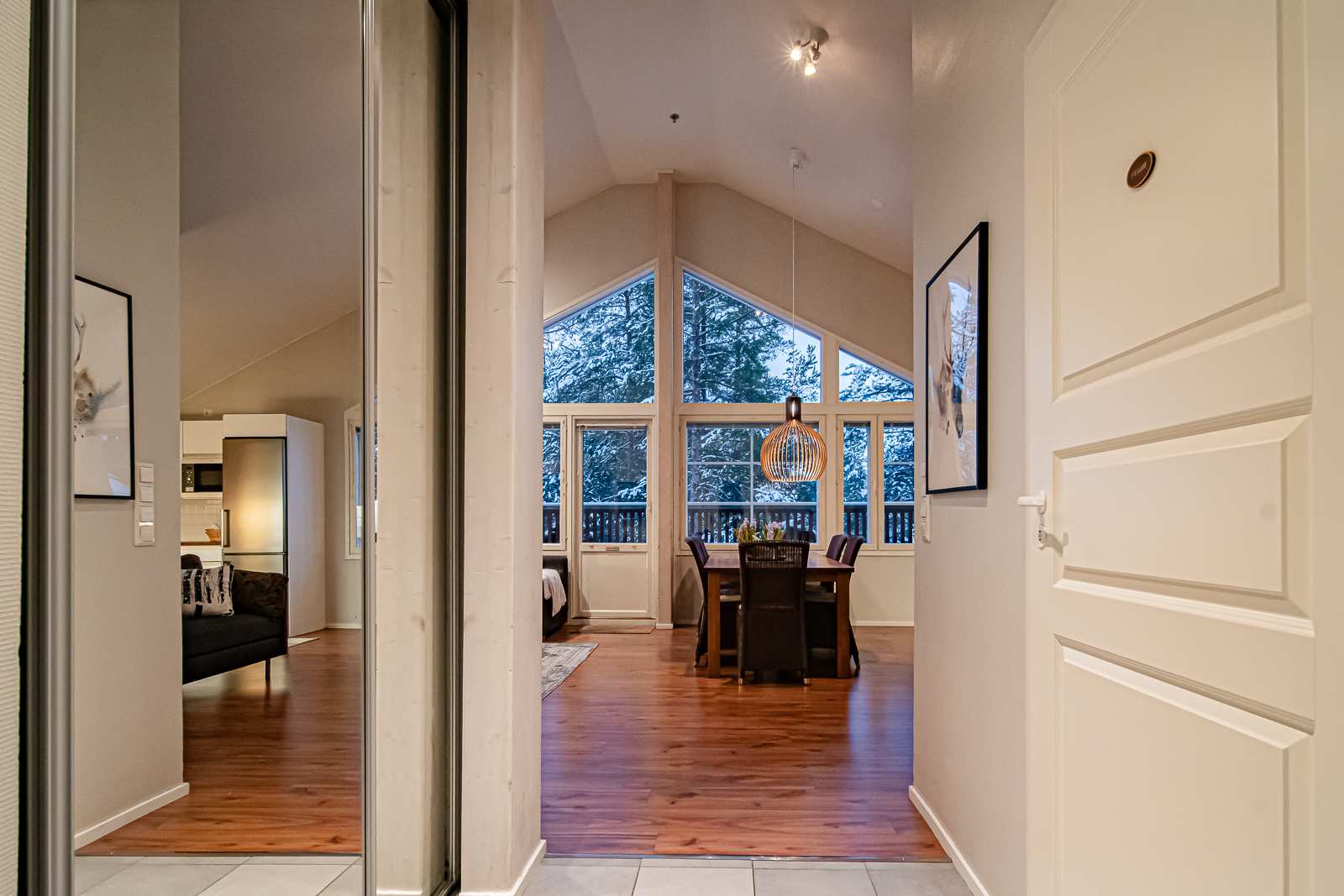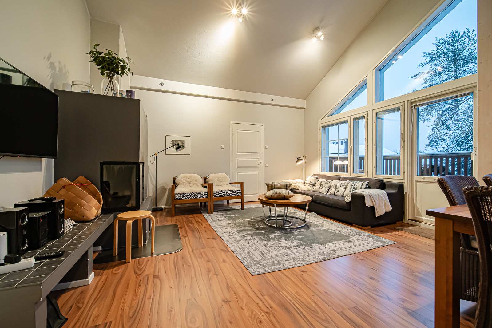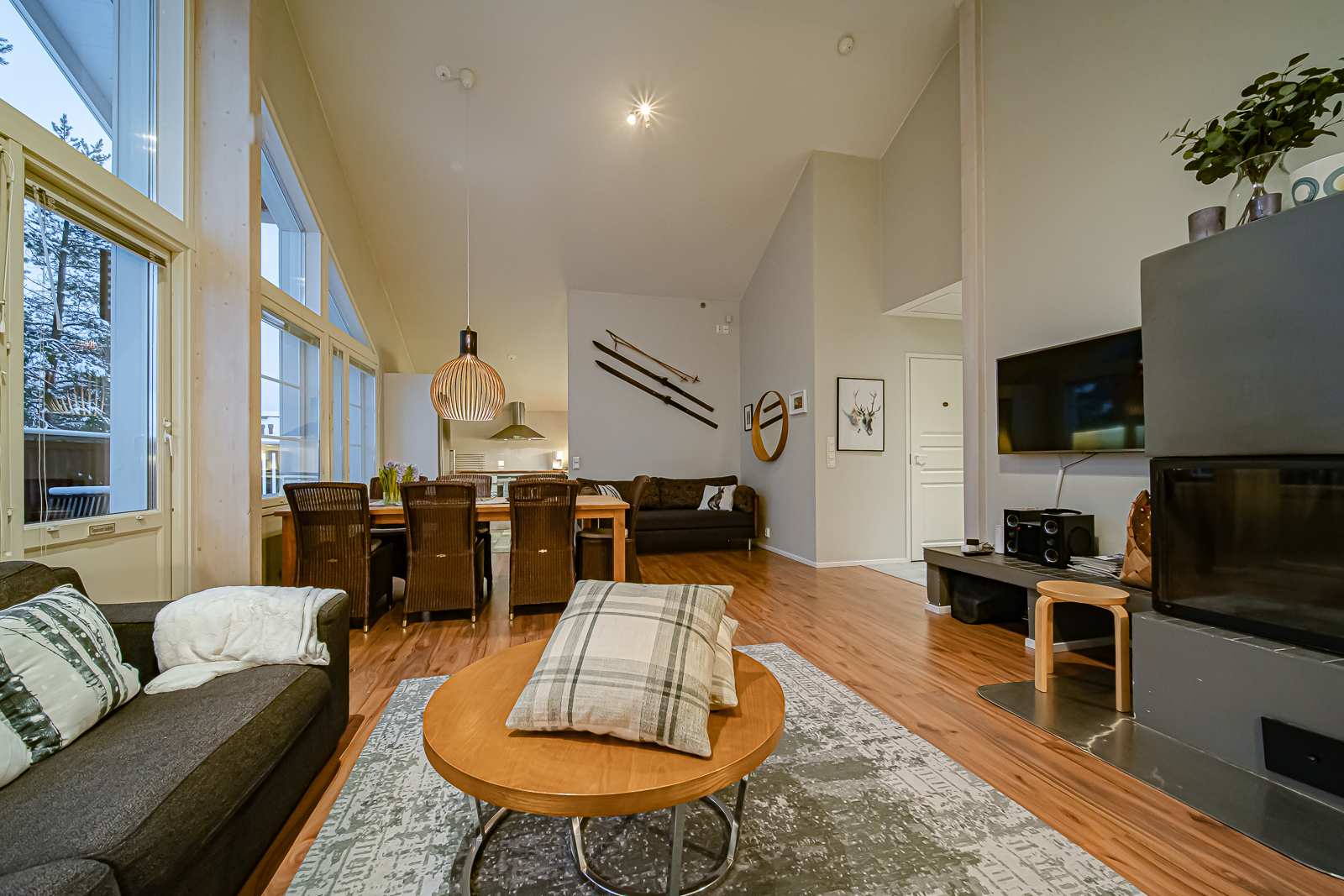 Valoisa ja avara kattohuoneisto Levin keskustassa. Taloyhtiössä hissi. Ylimmässä kerroksessa oleva huoneisto, jossa koko kerros rappukäytävineen kuuluu kyseiselle huoneistolle. Huoneisto yhdessä tasossa, kaksi parveketta sekä takka.