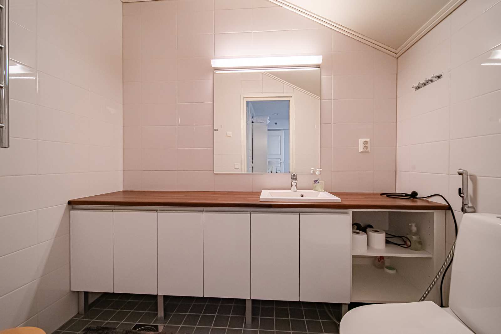 | Kylpyhuone | Varusteet: suihku Seinät: kaakeli Lattia: laatta |