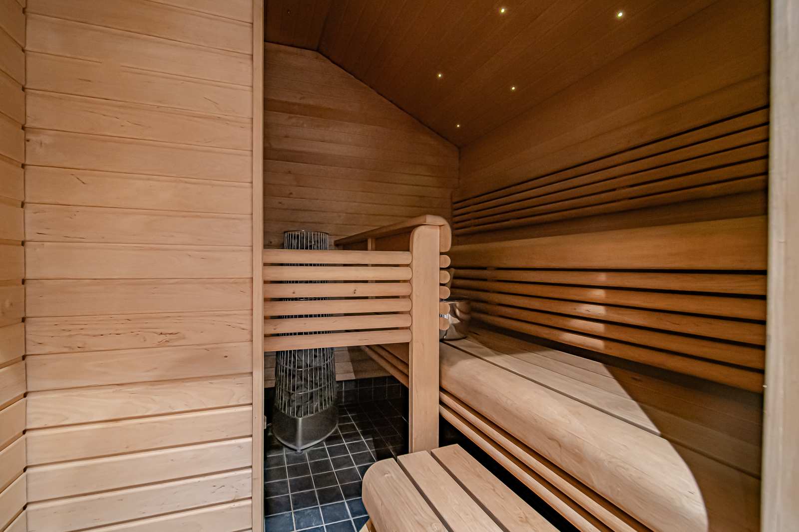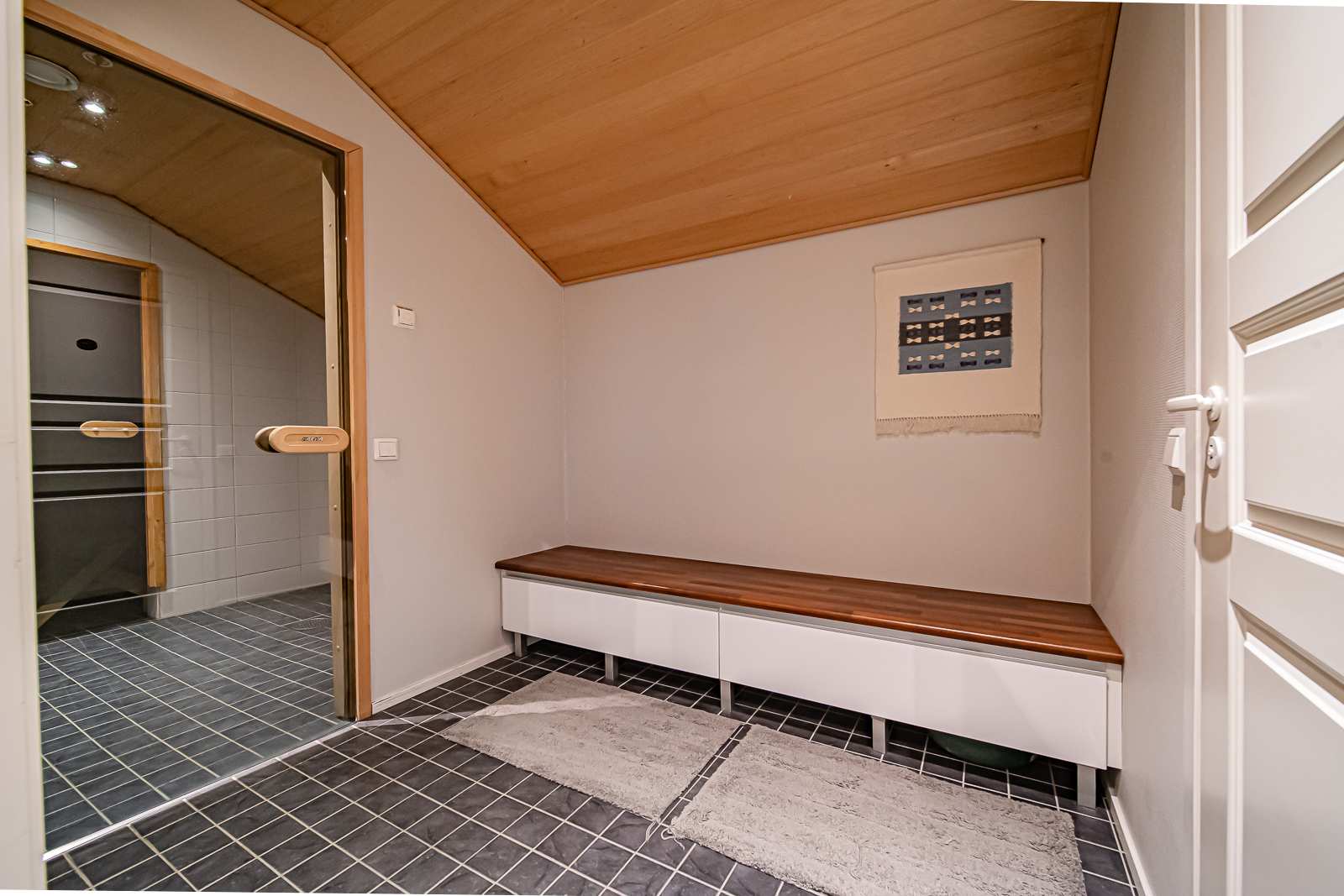 | Saunan pinnat | Seinät: puu Lattia: laatta |