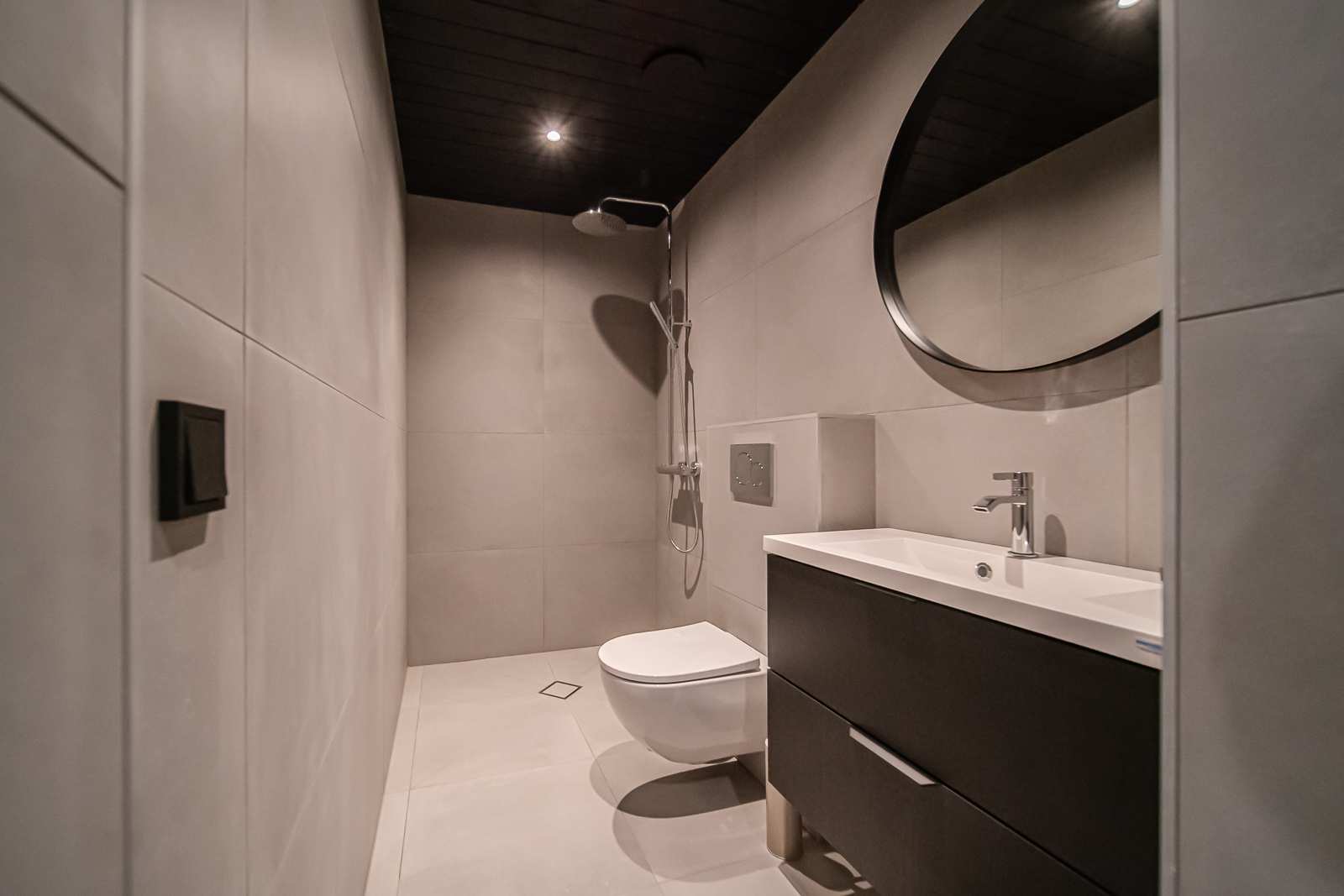 Keskikerroksessa wc-suihkutila. Lattia: laatta Varusteet: lattialämmitys, suihku Seinät: kaakeli Lukumäärä: 2 |