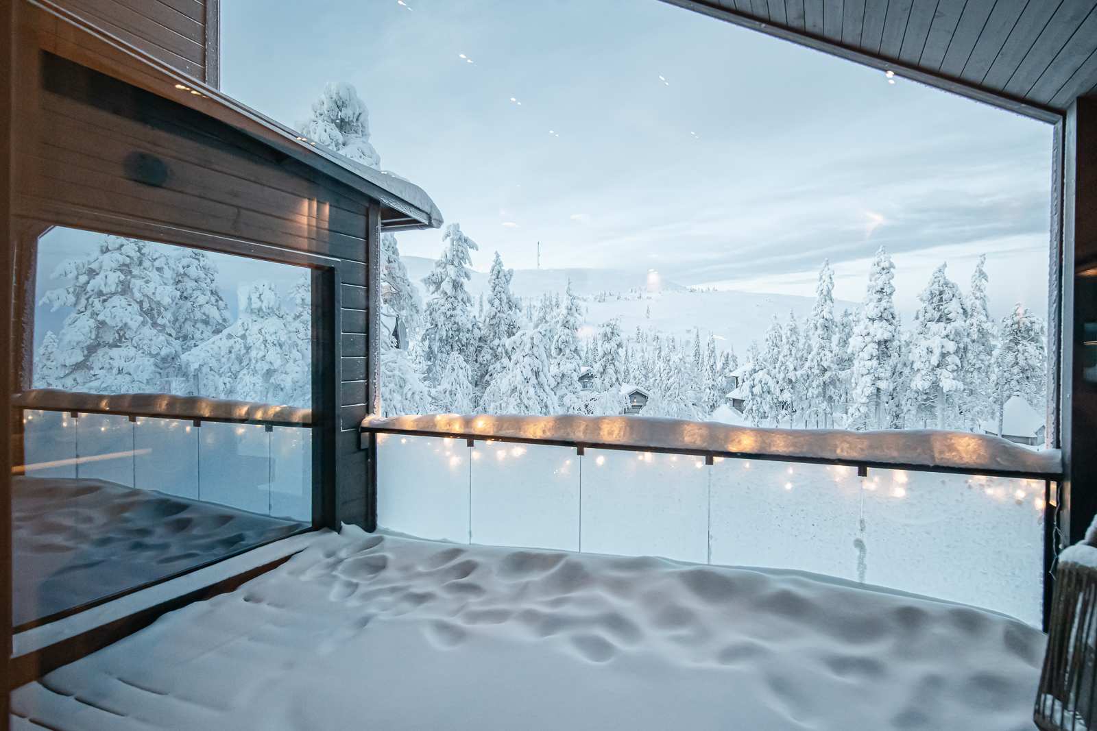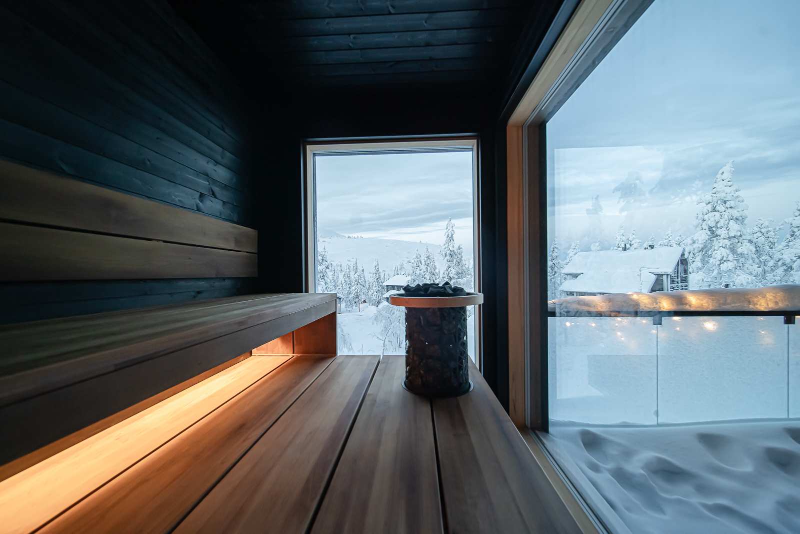 | Saunan kuvaus | Saunan ikkunoista avautuu kauniisti Levitunturi. |