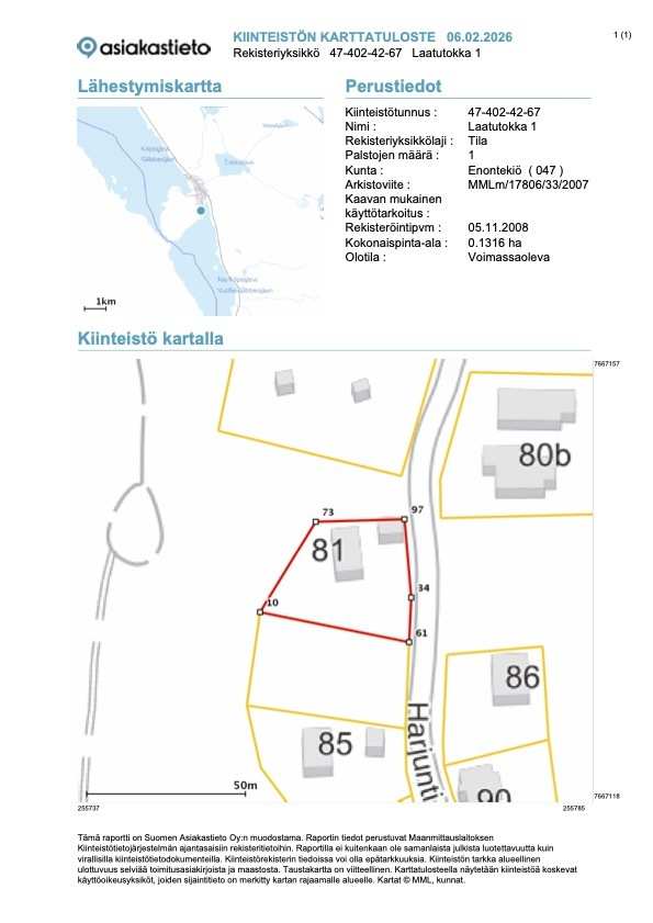 | Tontin pinta-ala | 1 316,0 m2 |