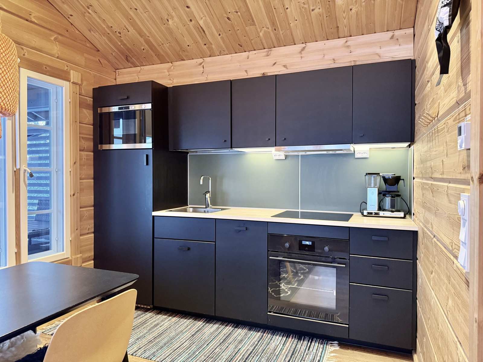 | Saunan pinnat | Seinät: puu Lattia: laatta |