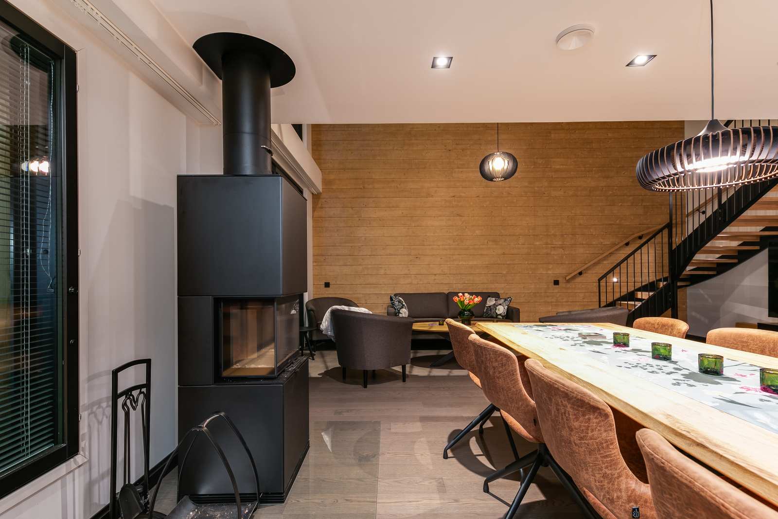 Huoneistossa neljä makuuhuonetta sekä parvitila. Kaksi kylpyhuonetta sekä saunaosasto. Eteinen ja tilava olohuone-ruokailu- ja keittiötila. Myydään kalustettuna irtaimistoineen.