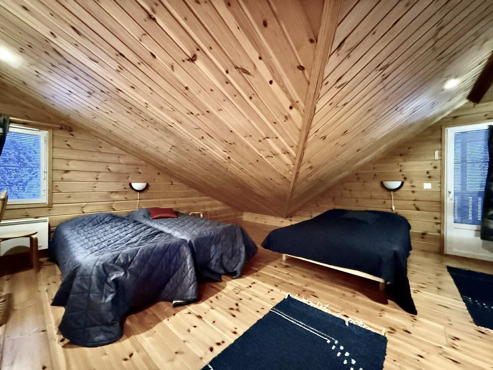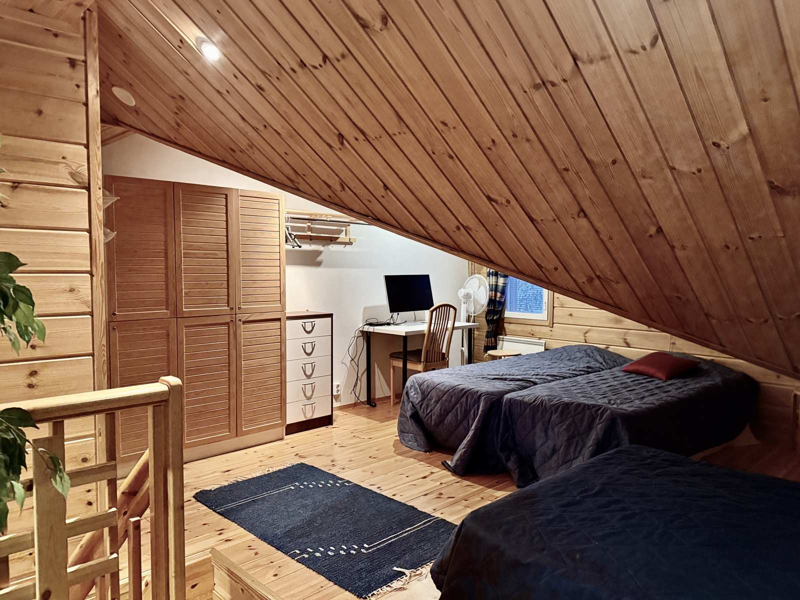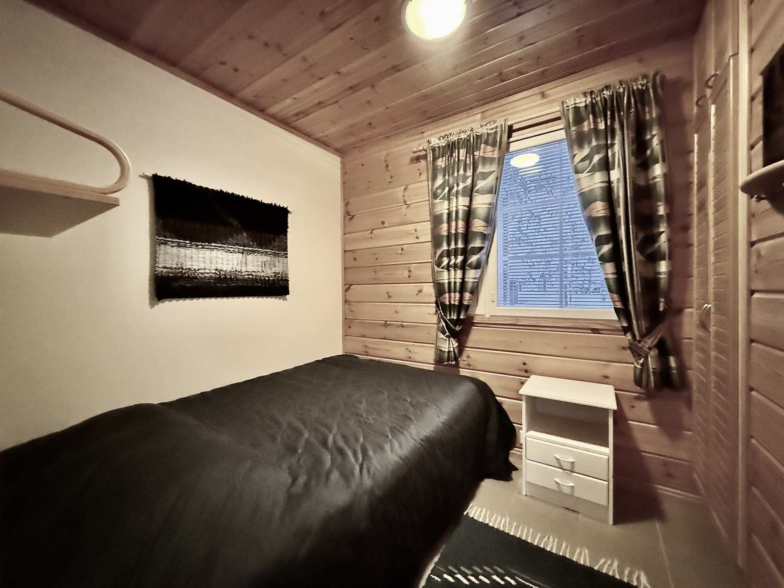| Makuuhuone | Seinät: puu Lattia: laatta |