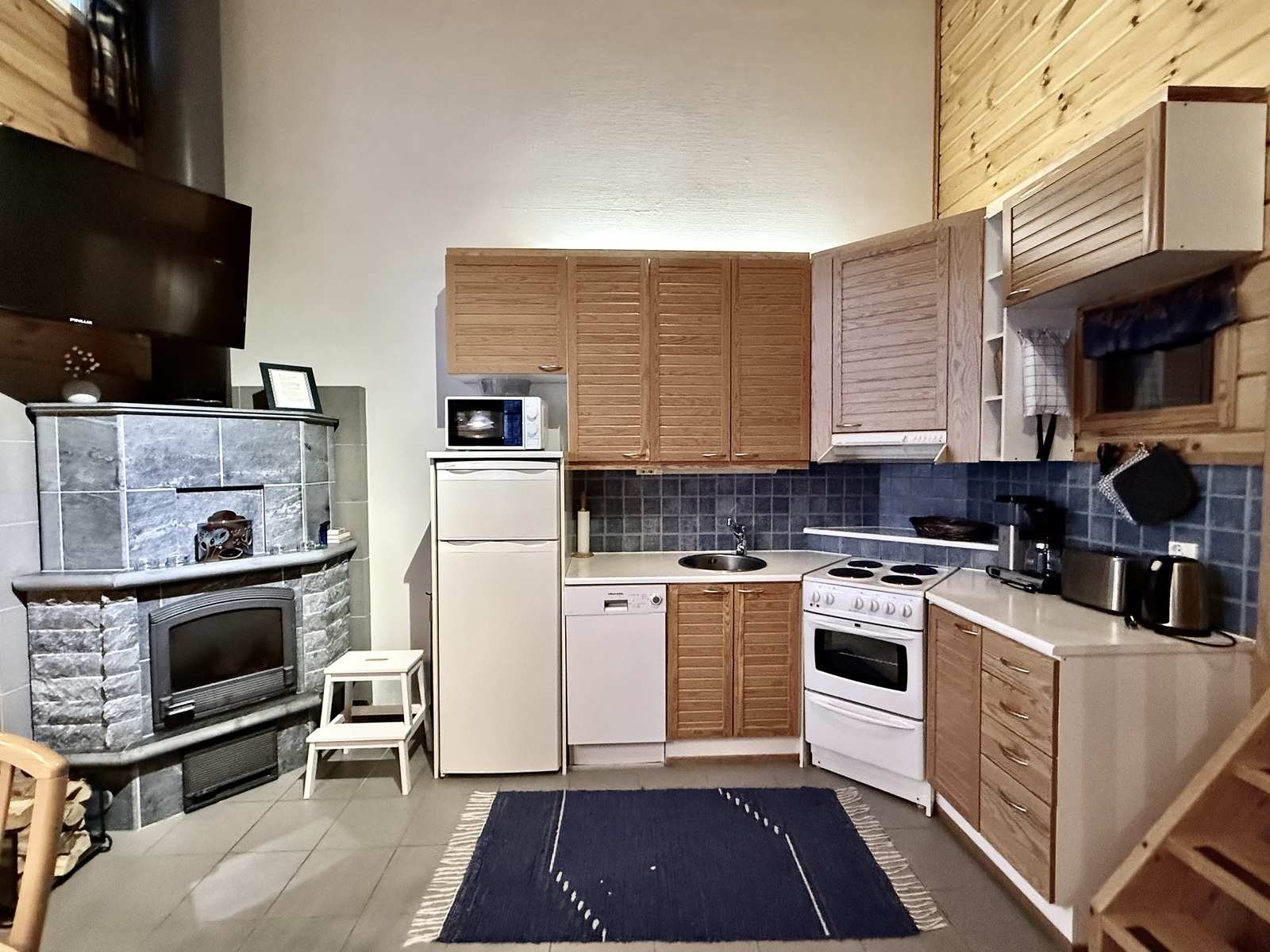 | Keittiön varustus | Jääkaappi ja pakastin: jääkaappi/pakastin Tasot: laminaatti Seinät: kaakeli Lattia: laatta Muut varusteet: liesikupu, liesituuletin, mikroaaltouuni, astianpesukone Liesi/uuni: sähköliesi |