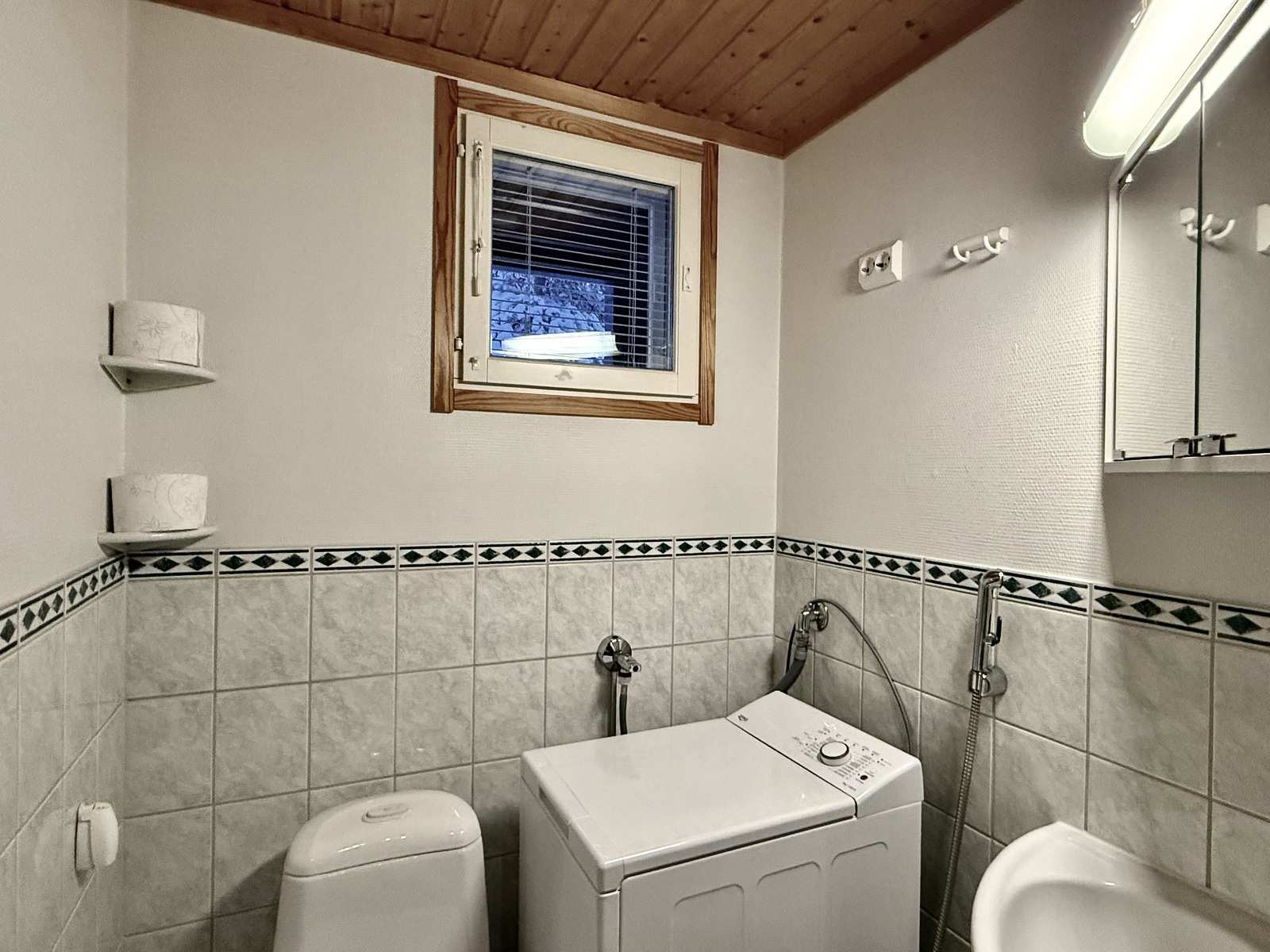 | Kodinhoitohuone | Pyykinpesukone wc:ssä. Kuivauskaappi eteisessä. |
