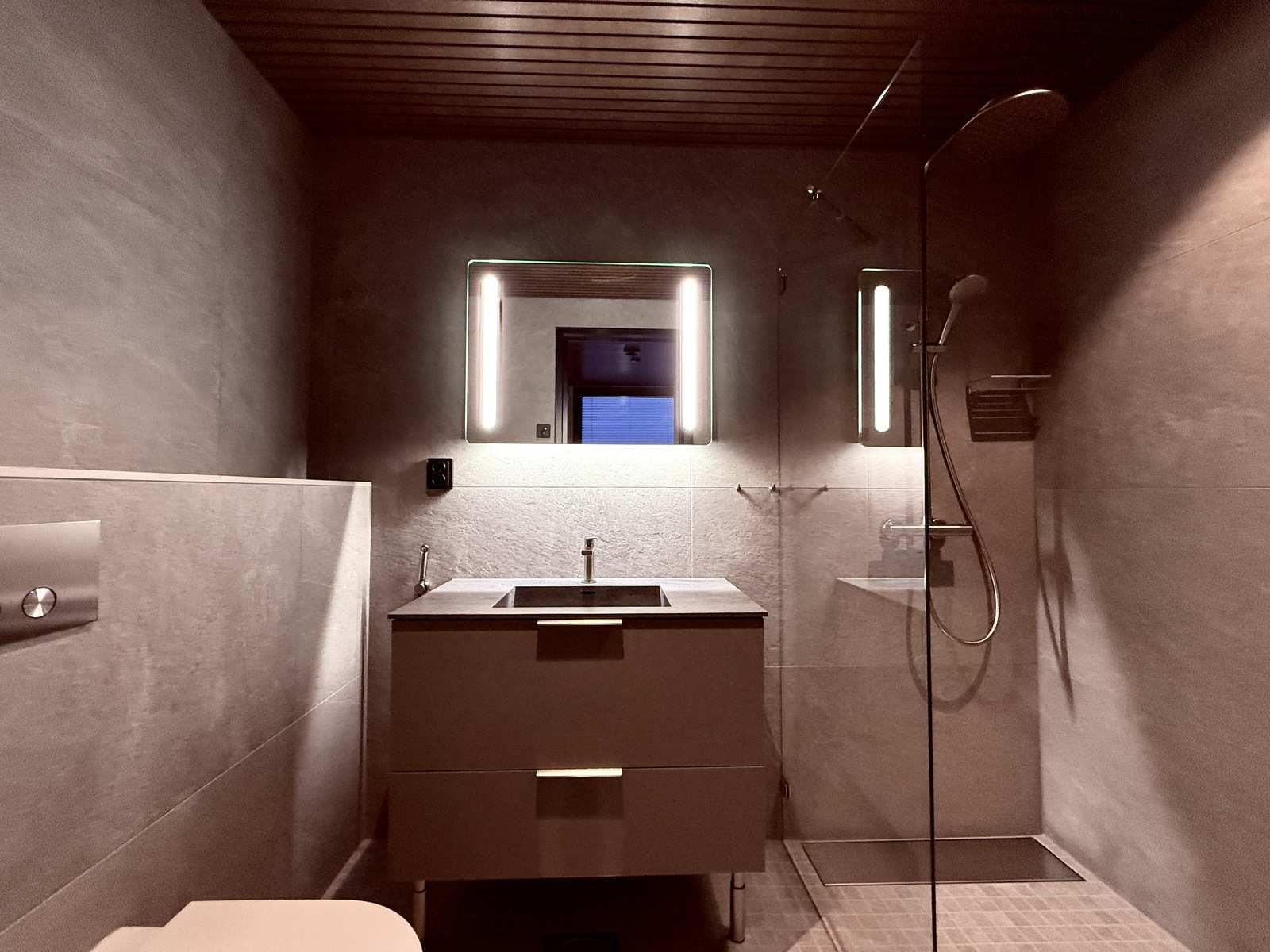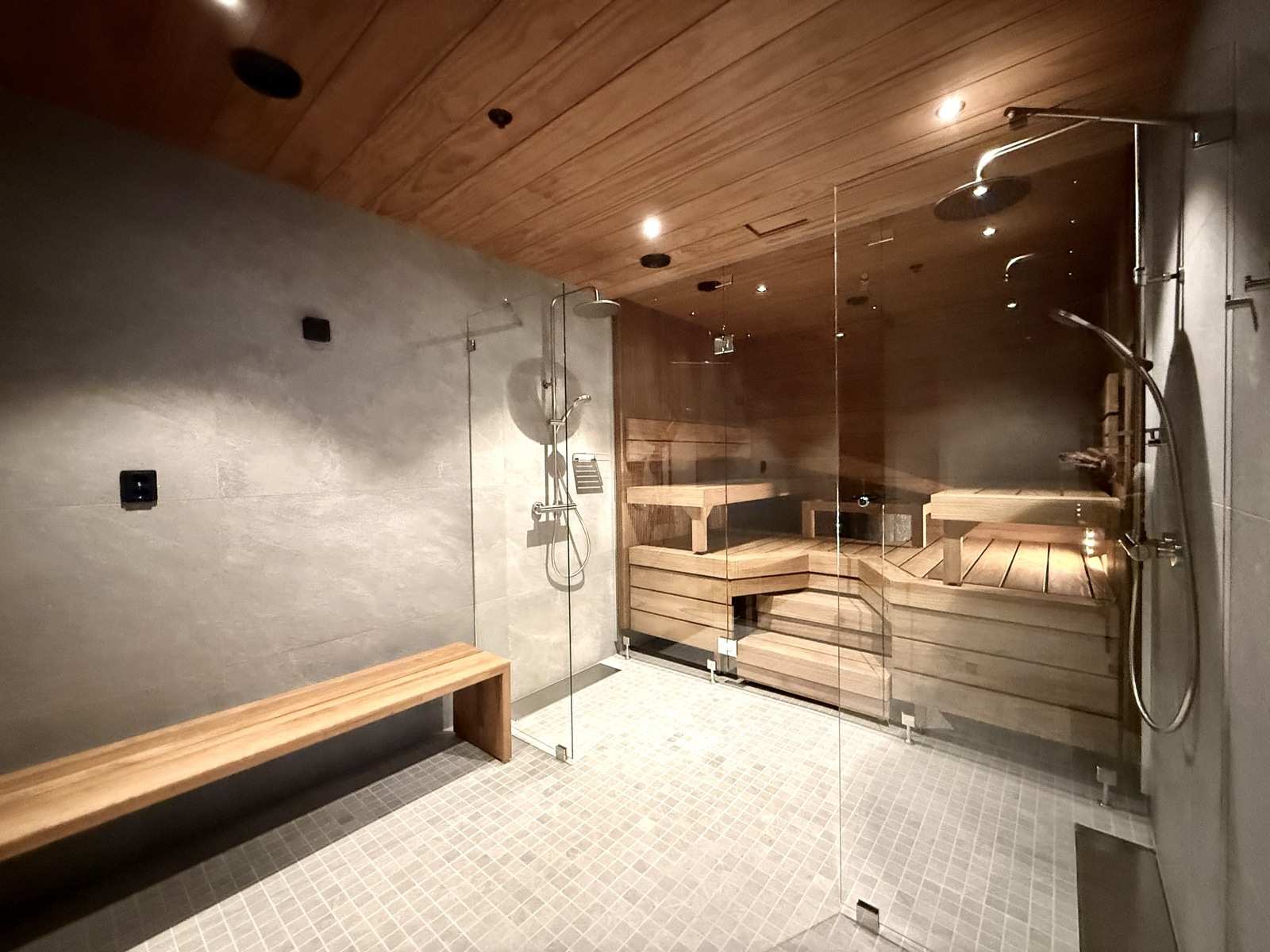 | Saunan pinnat | Seinät: puu Lattia: laatta |