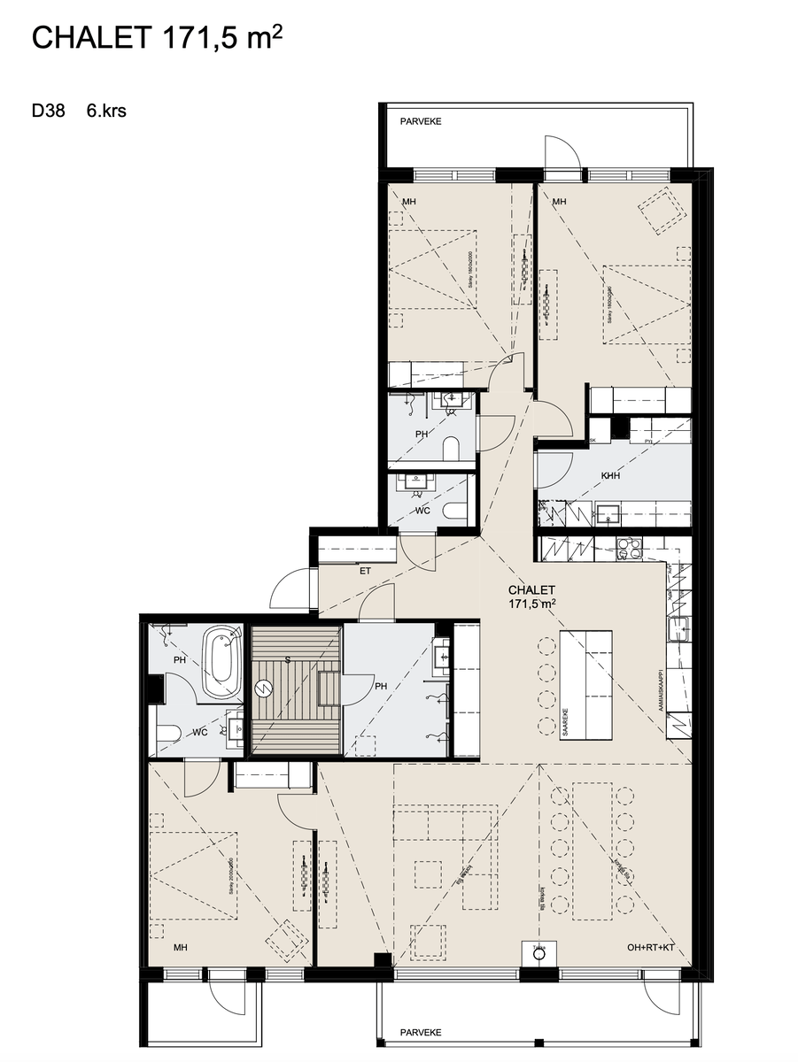 Icy Hot Levi kokonaisuuteen kuuluvan 2. vaiheen KKoy Levi Lingonberry huoneisto D38, 6.kerros 173m2, rinne- ja metsämaisema, läpitalonhuoneisto. LATTE materiaali. Heti vapaa.