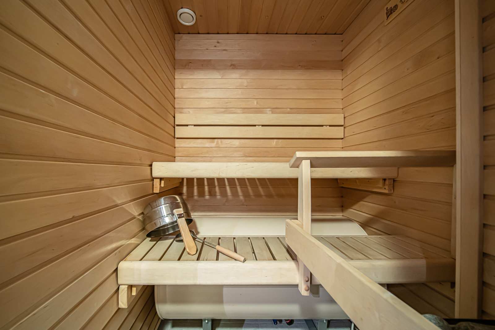 | Saunan pinnat | Seinät: puu Lattia: laatta |