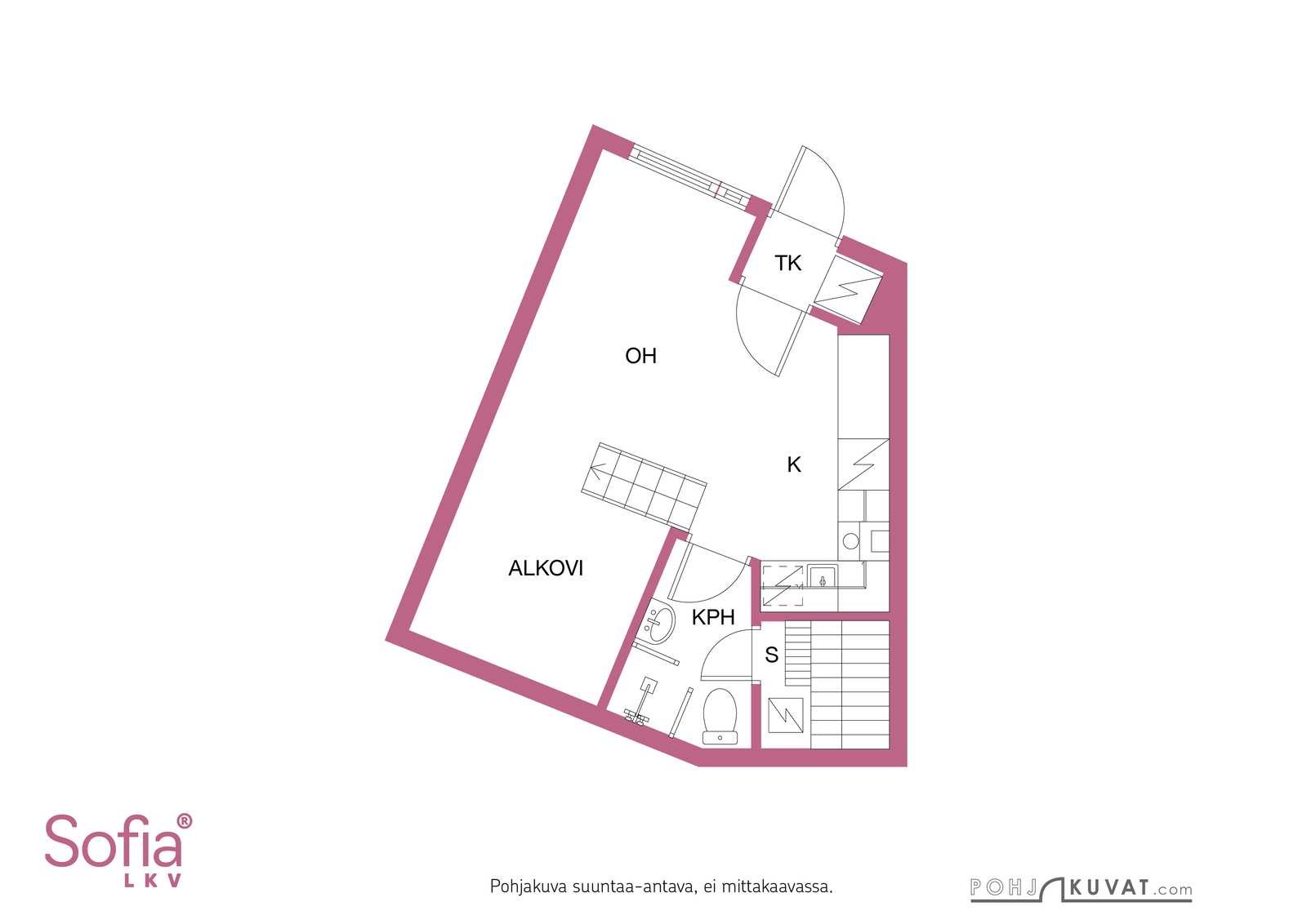 | Huoneistoselitelmä | Majoitushuone+makuualkovi+ saunaos+parvi |
