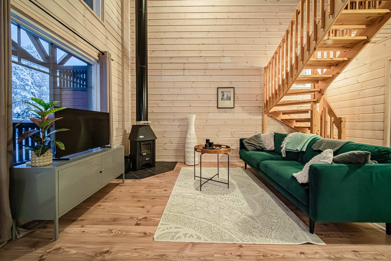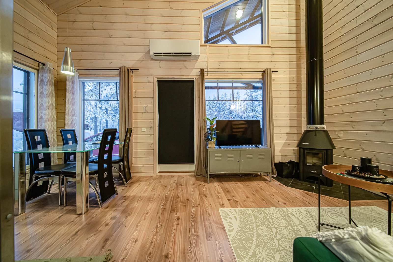 | Olohuone | Seinät: puu Lattia: laminaatti |