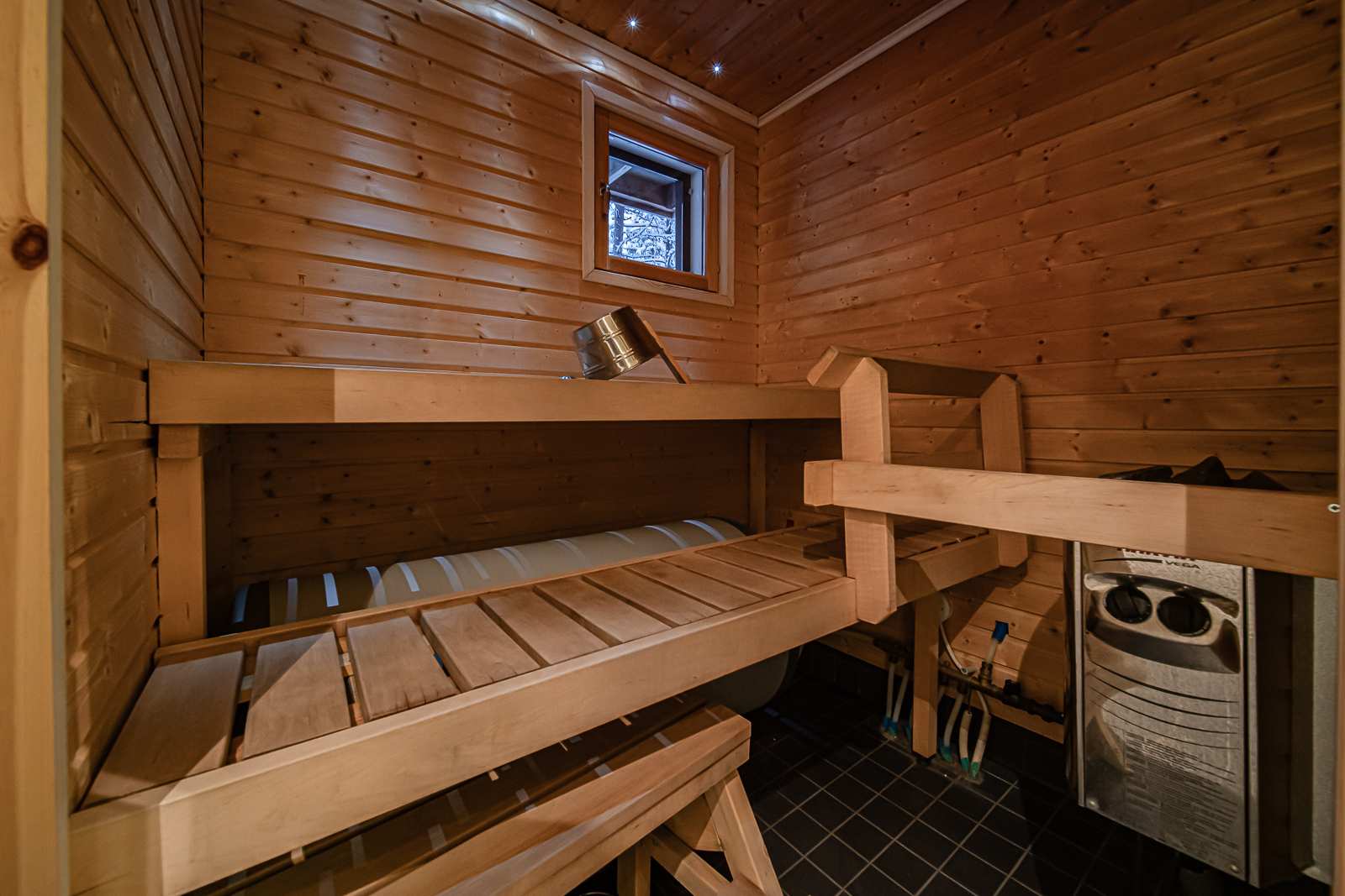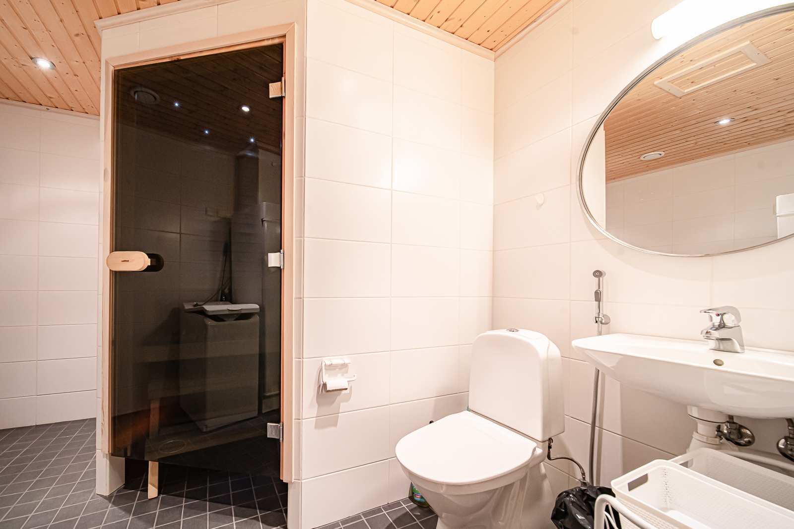 | Saunan pinnat | Seinät: puu Lattia: laatta |