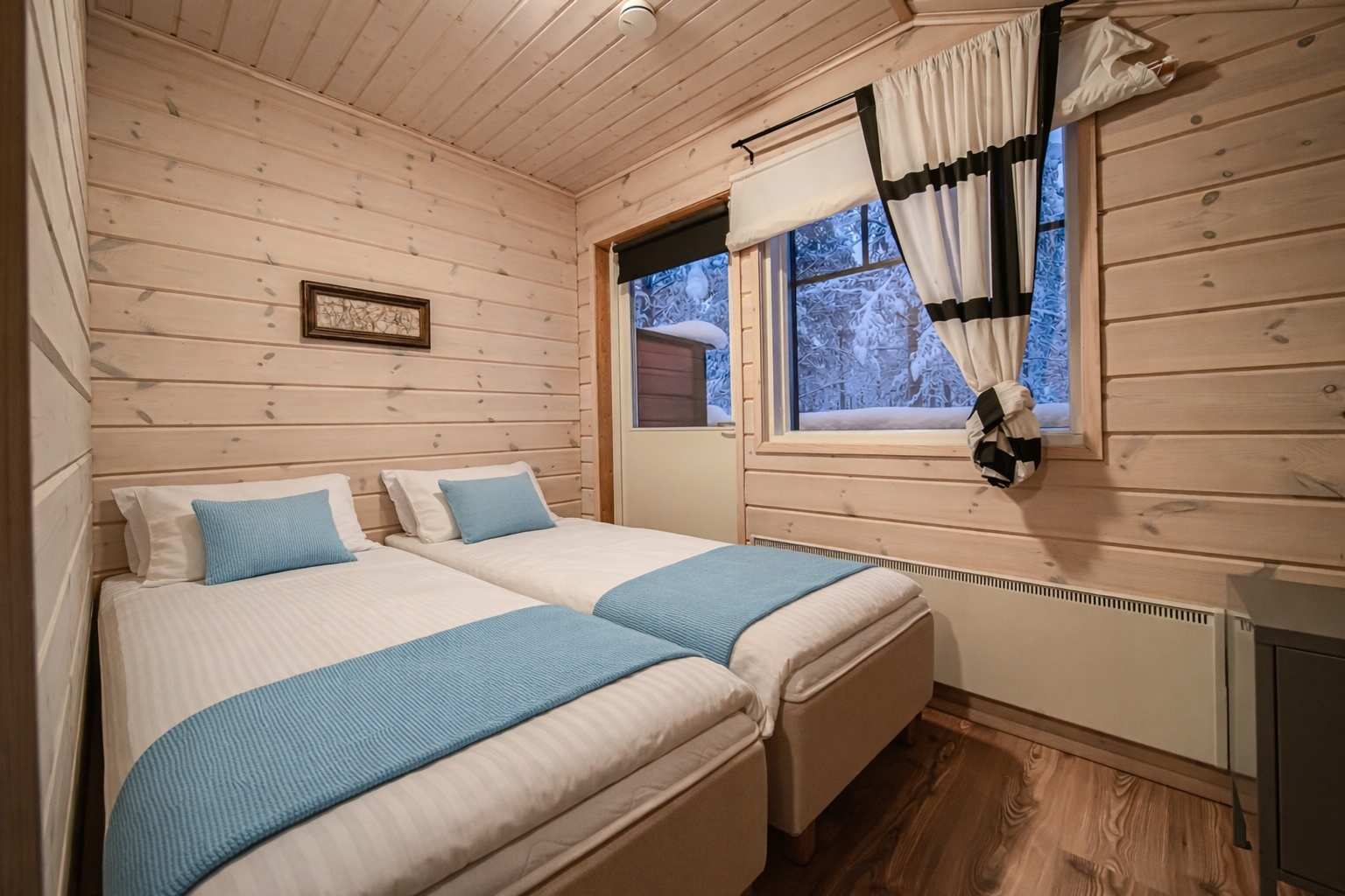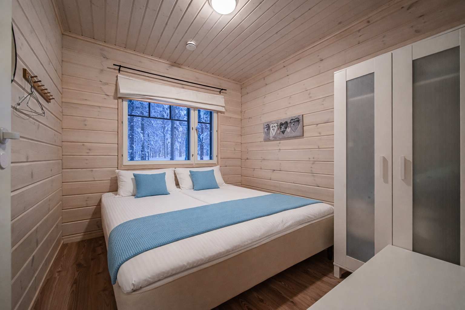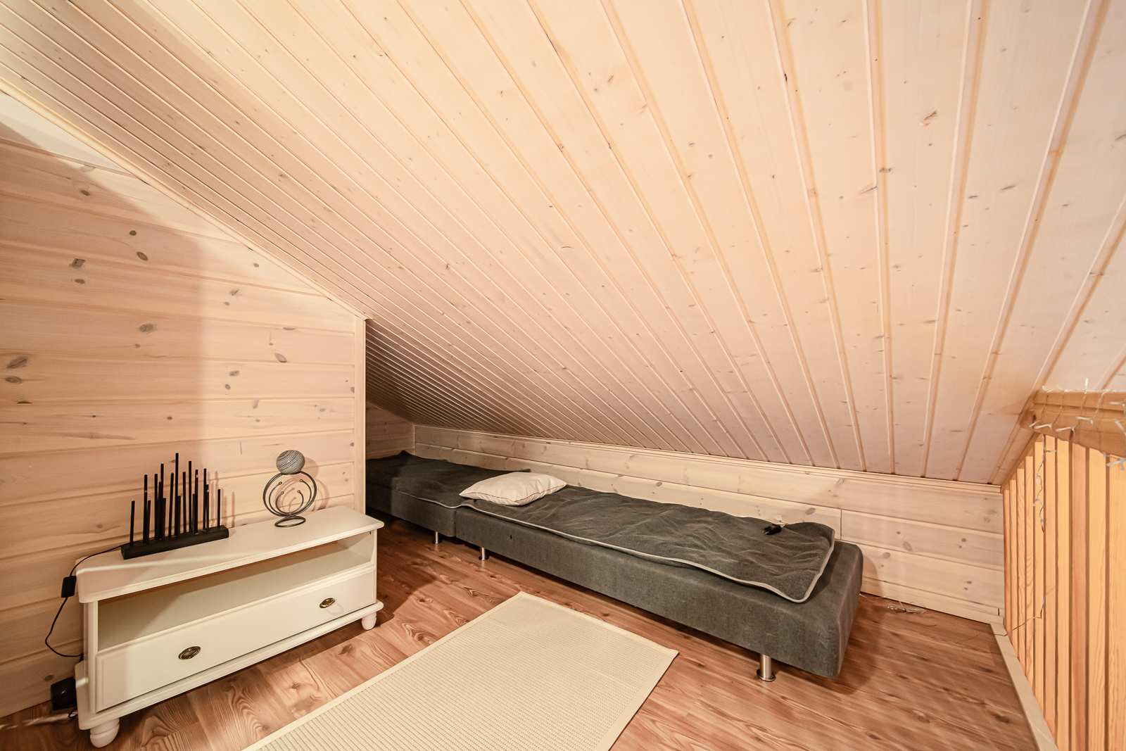 | Makuuhuone | Seinät: puu Lattia: laminaatti |