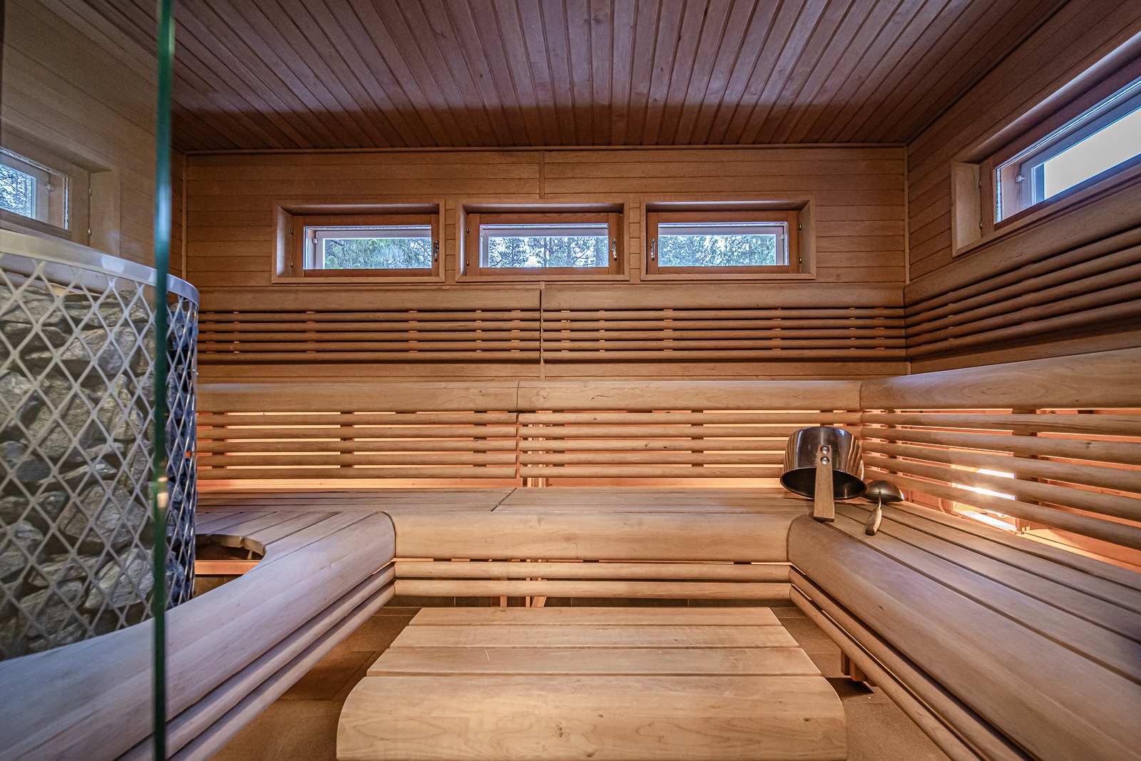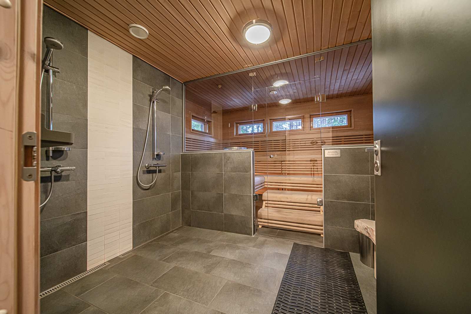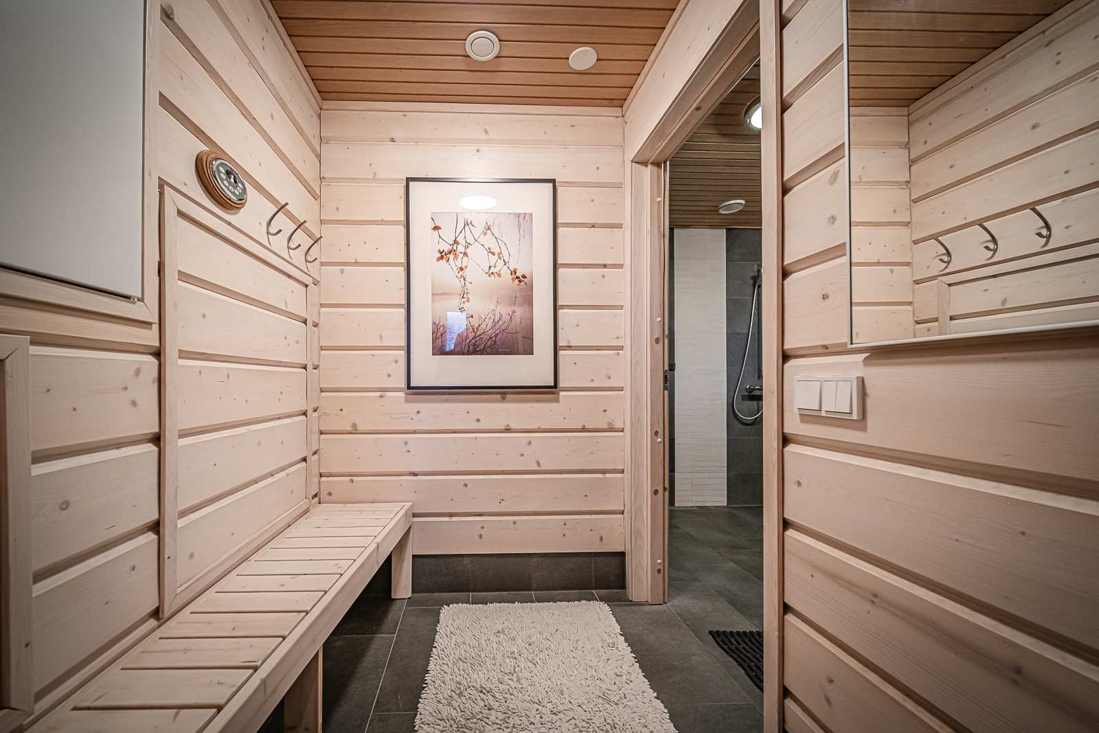 | Saunan pinnat | Seinät: puu Lattia: laatta |