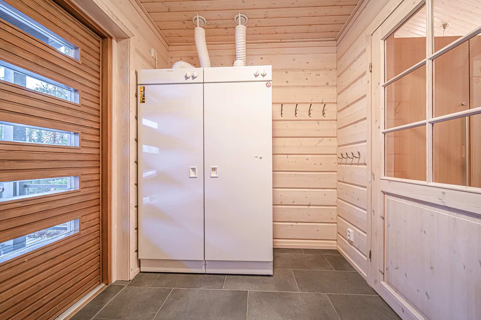 | Kodinhoitohuone | Seinät: puu Varusteet: pesukone Lattia: laatta |