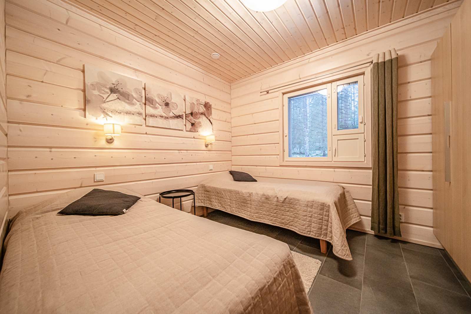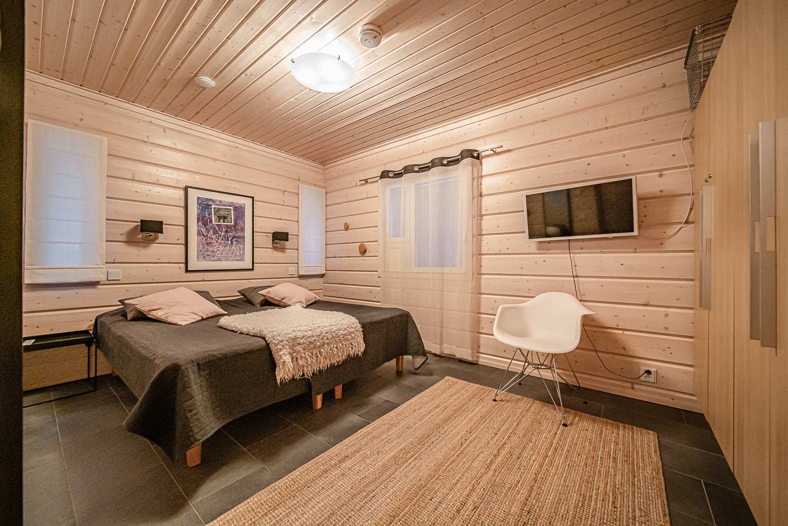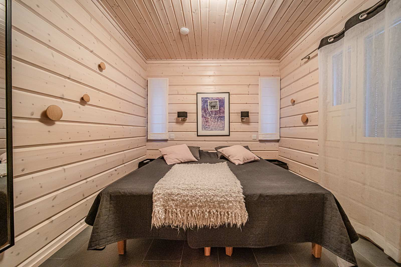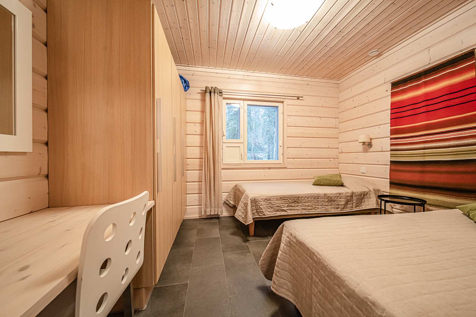 | Makuuhuone | Seinät: puu Lattia: laatta |