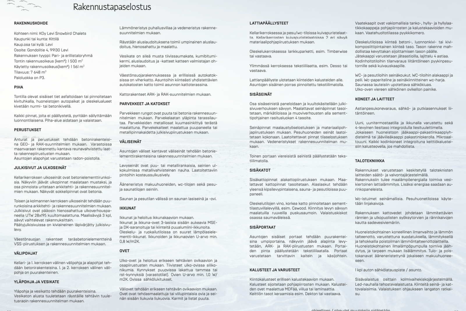 | Taloyhtiön nimi | Kiinteistö Oy Levi Snowbird Chalets |