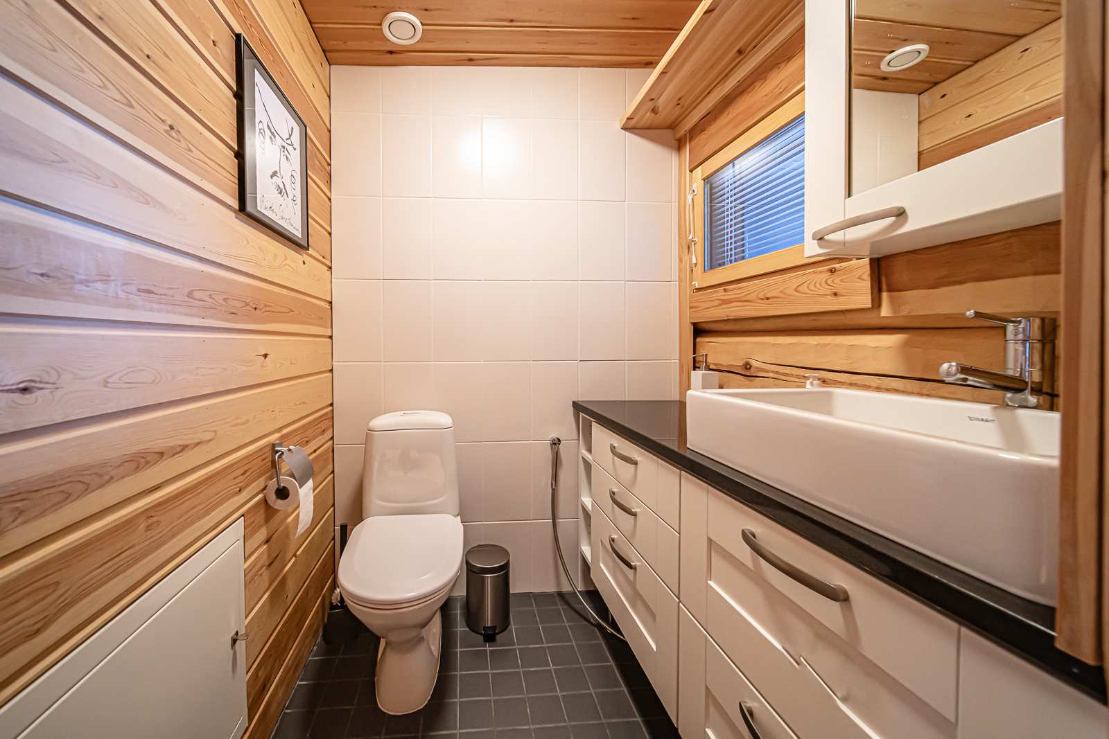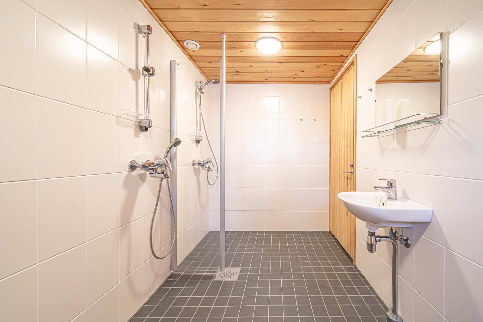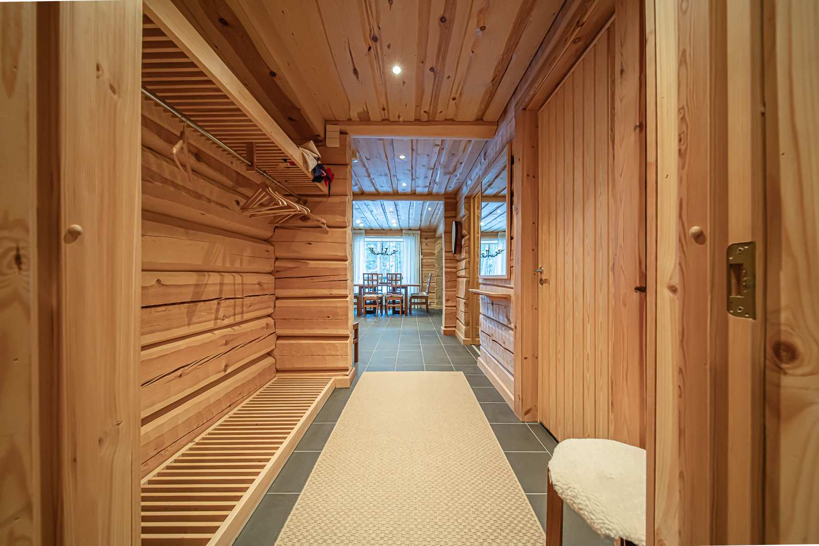 | Saunan pinnat | Seinät: puu Lattia: laatta |