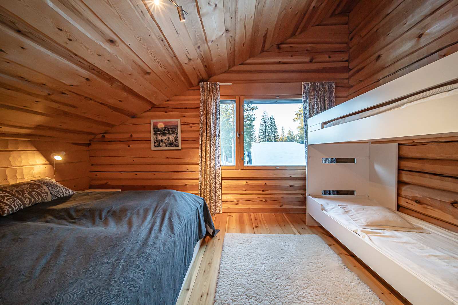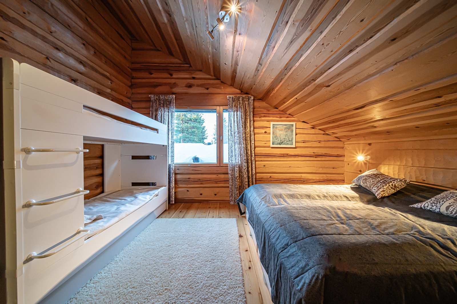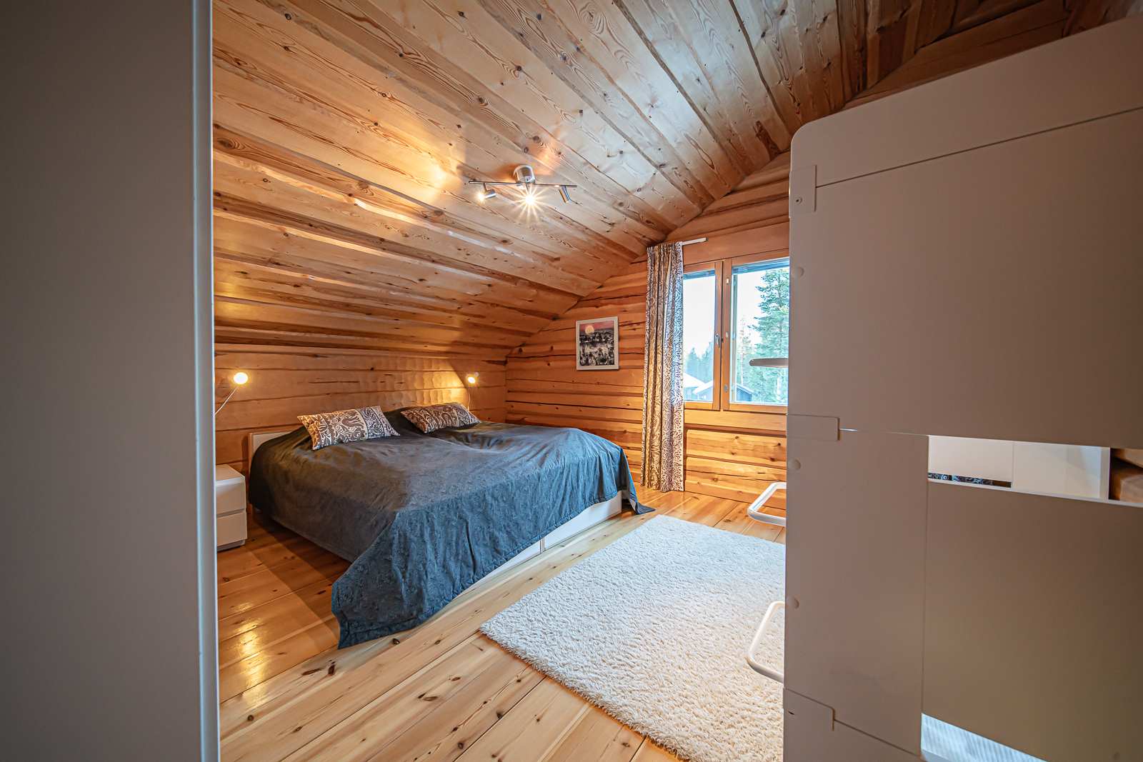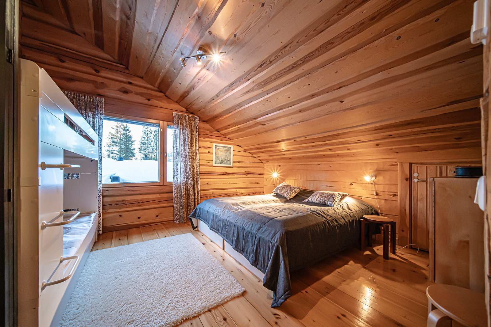 | Makuuhuone | Seinät: puu Lattia: lauta |