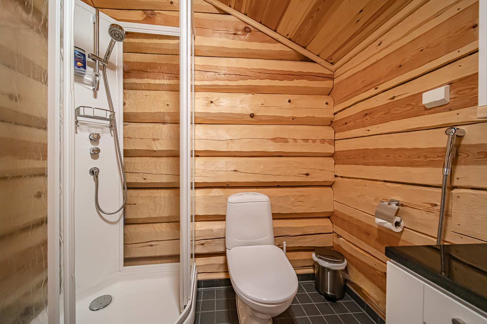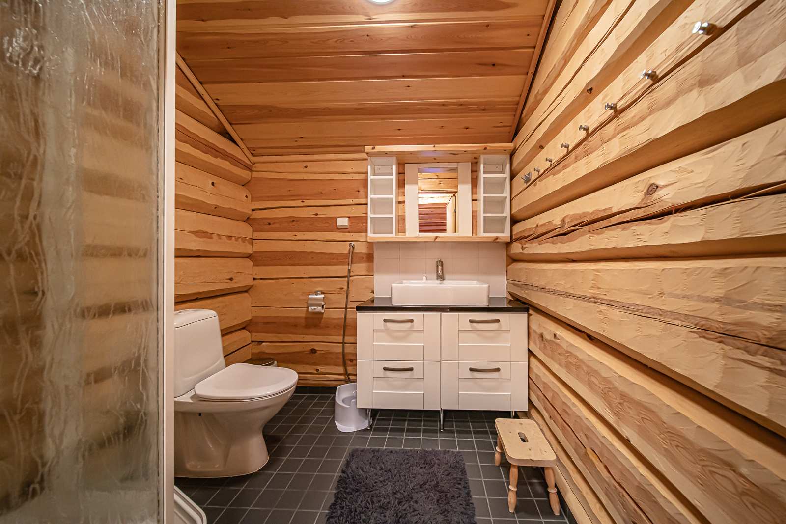 | Erillinen WC | Lattia: laatta Varusteet: suihku Seinät: kaakeli, puu Lukumäärä: 2 |