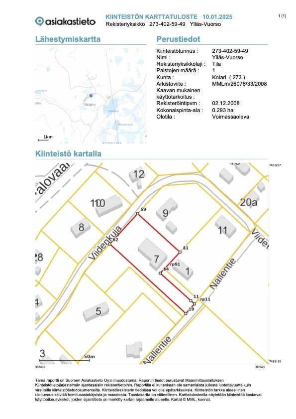 | Tontin pinta-ala | 2 930,0 m2 |