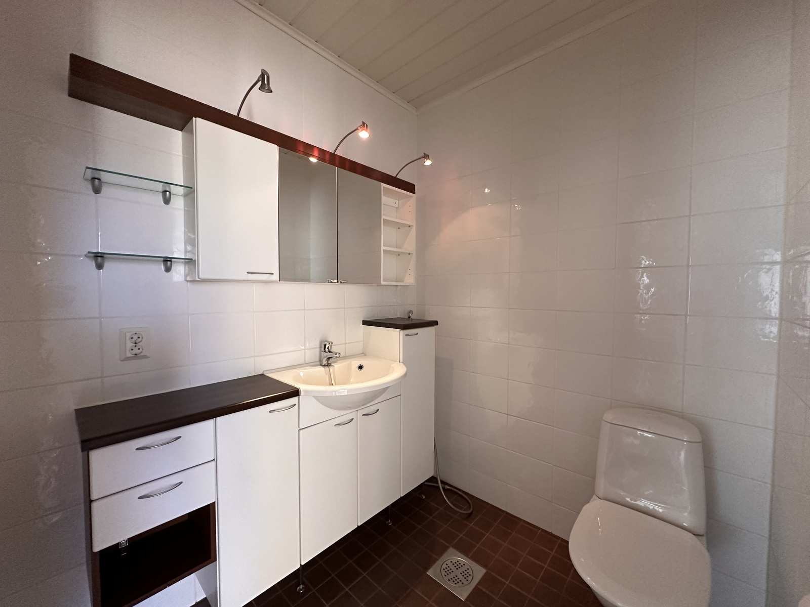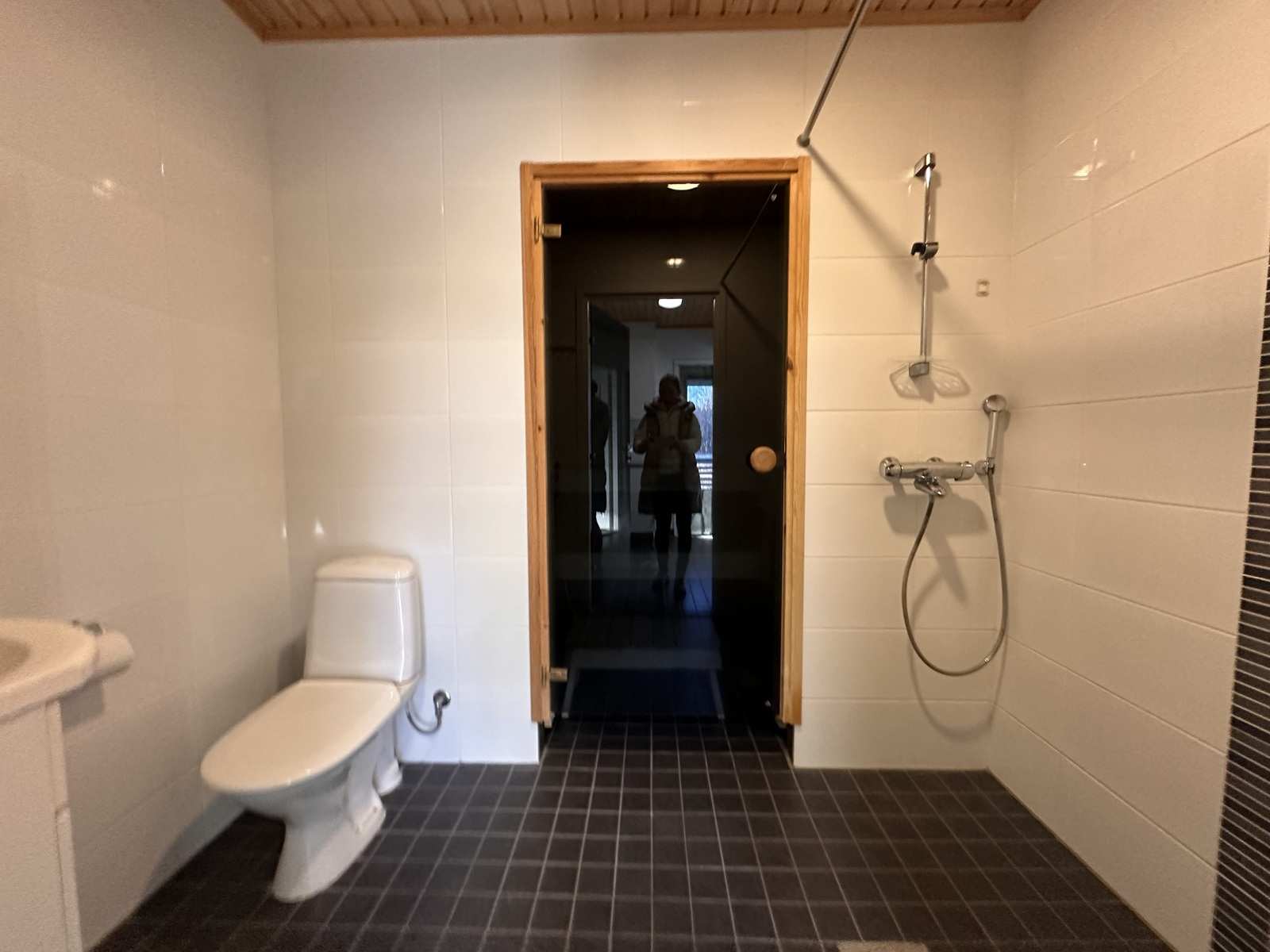 | Saunan pinnat | Seinät: puu Lattia: laatta |